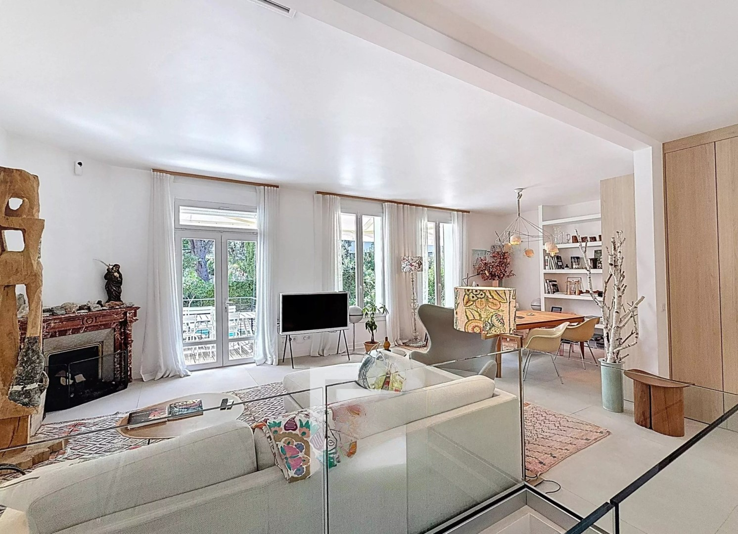 Двухместная гостиная продолжается красивой террасой, отдельной современной и полностью оборудованной кухней. Спальная зона включает 3 спальни, каждая со своей ванной комнатой. Сад площадью 380 м² предлагает средиземноморскую растительность и бассейн.