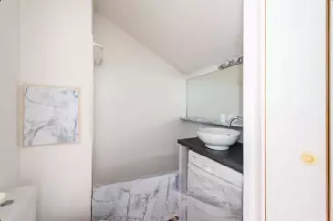 Квартира включает в себя: светлую гостиную с выходом на первую террасу с видом на море, удобный уголок для детей, оборудованную кухню, открытую в гостиную, спальню на верхнем этаже с смежной ванной, дополнительную ванную комнату, отдельный туалет, две террасы с открытым видом и отдельное парковочное место.