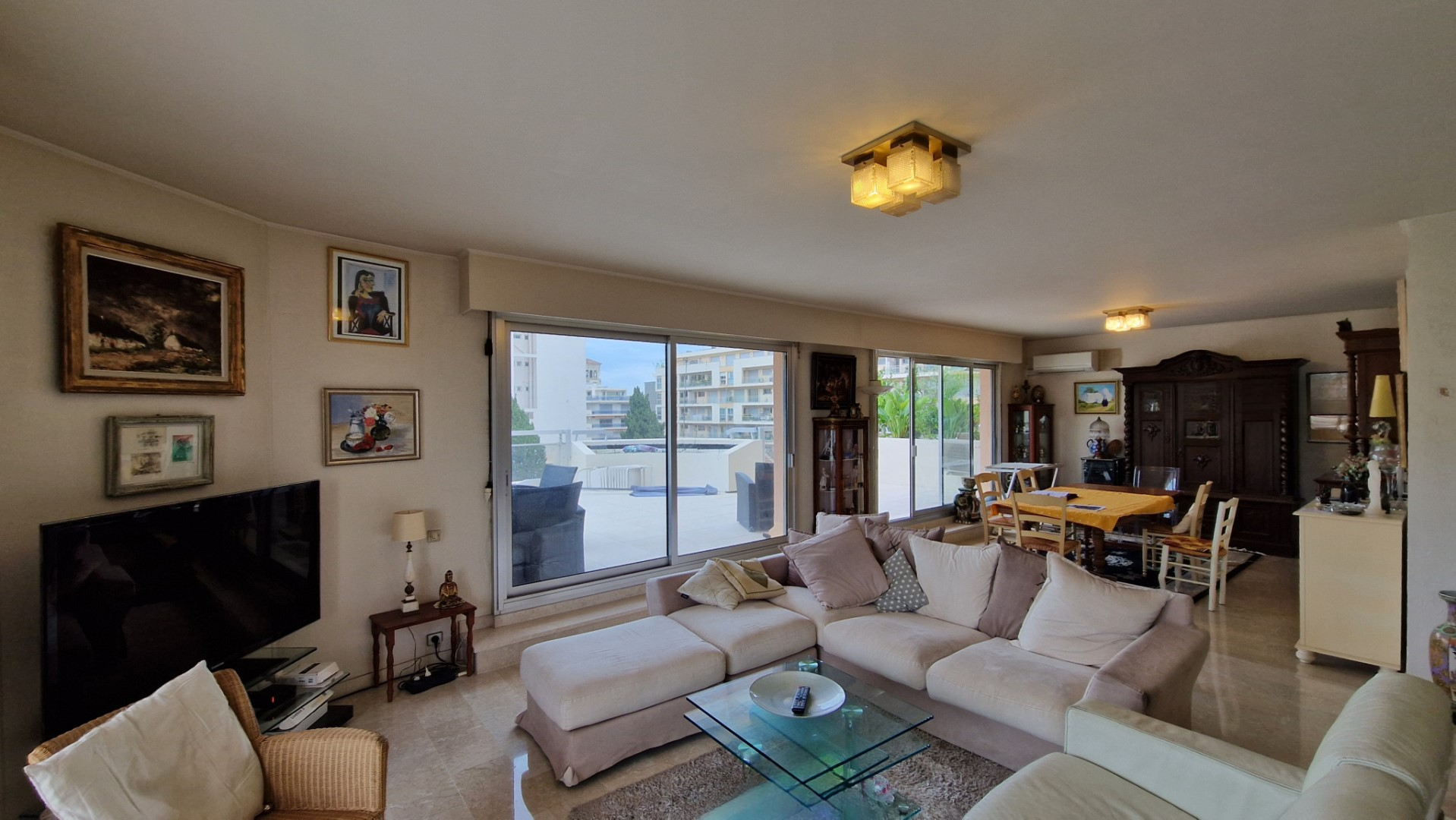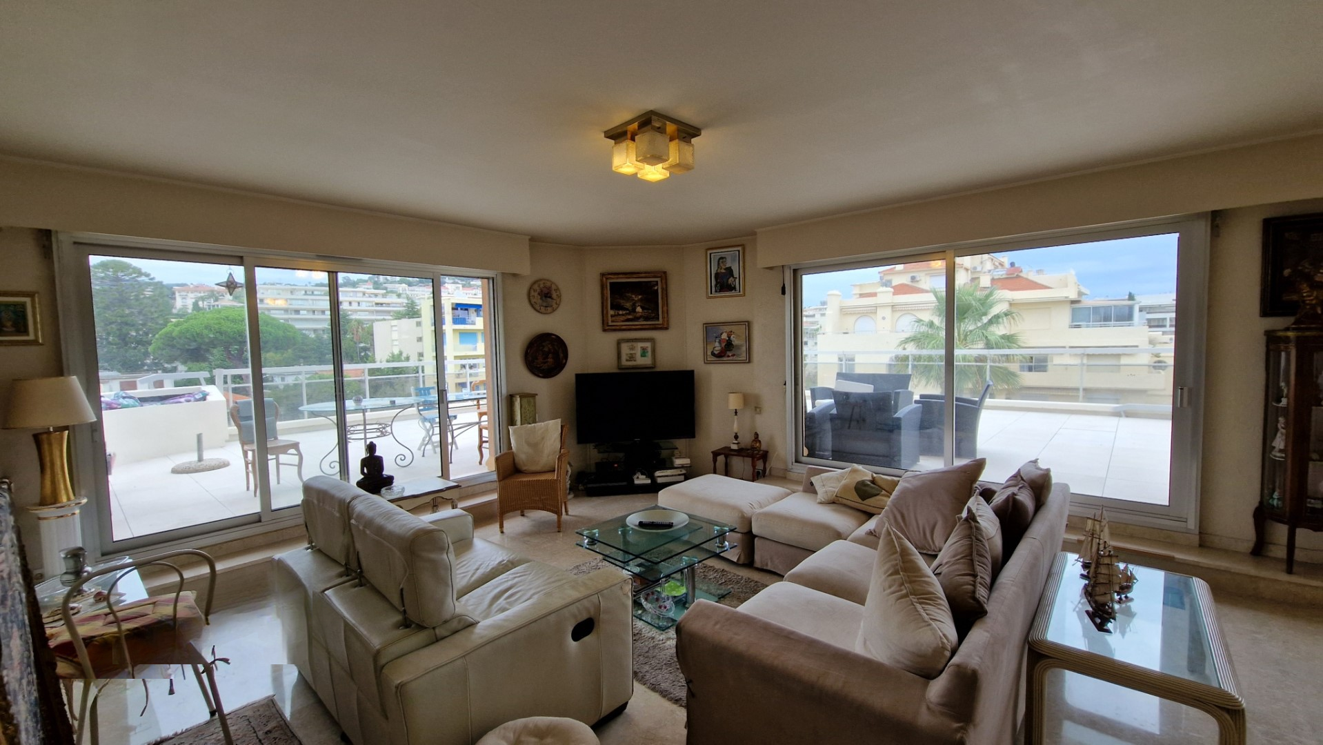 На пятом этаже здания Le Palais Royal, расположенного в районе Пойнт Круазет в Каннах, представлен просторный семикомнатный апартамент площадью 193,5 м². Прекрасный вид на 360° обеспечивается за счет 135 м² террас, окружающих пространство.