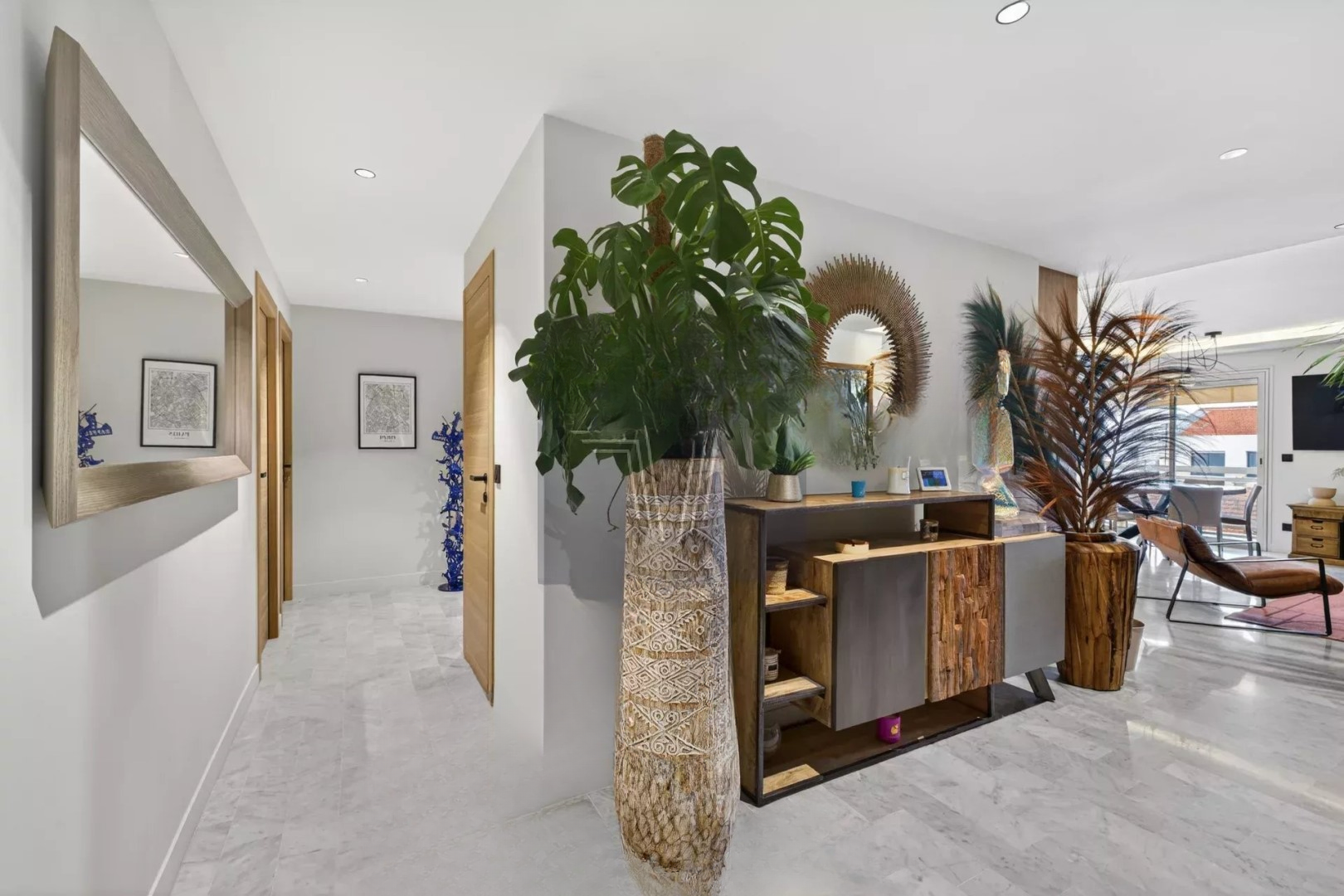 Квартира в отличном состоянии, площадью 121,03 м² по закону Carrez, идеально распределена, с террасой, выходящей на юг, и панорамным видом на город. Включает в себя прихожую, просторную гостиную с открытой кухней площадью около 40 м², обеспечивающую светлое пространство для приема, продолженное на солнечную террасу площадью 12 м², четыре спальни, включая просторную главную спальню, каждая с собственной душевой комнатой и двумя отдельными туалетами. Парковка и подвал дополняют объект.