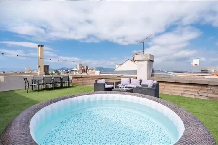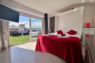 Прекрасная меблированная студия в отличном состоянии площадью около 30 кв.м с выходом на две частные террасы: первая — 80 кв.м, оборудована джакузи (возможен бассейн), и вторая терраса — 90 кв.м (есть возможность дополнительного обустройства).