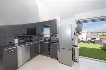 Очень редкая находка! Район Канн Banane — исключительный пентхаус с 170 кв.м террасами — последний этаж — в 200 м от Круазетт, пляжа и магазинов люксовых брендов, сразу за торговыми и ресторанными зонами (район улицы d'Antibes).