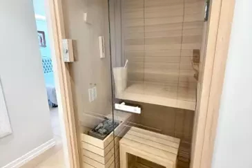 Полуоткрытая кухня может быть закрыта по желанию. Три спальни: родительская с ванной комнатой, большой гардеробной и сауной; у двух других также есть свои ванные комнаты.