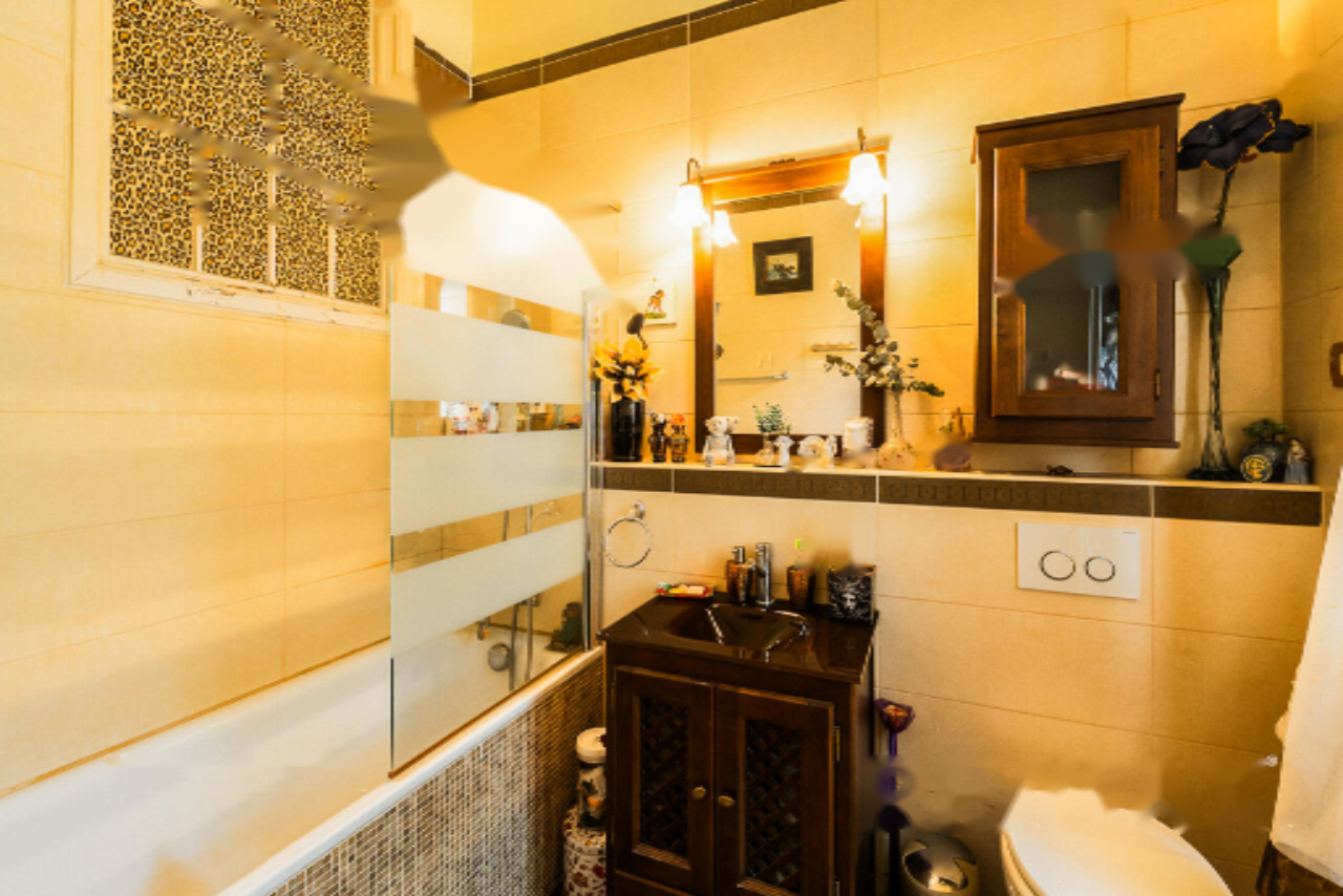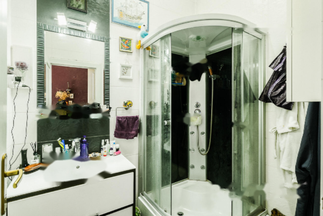 Внутреннее распределение площади отличается открытым и функциональным планом. Просторная прихожая переходит в широкий коридор, создавая ощущения открытости. Предусмотрены две спальни, каждая со своей ванной комнатой, которые выходят на тихий зеленый внутренний двор. Гостиная с выходом на уникальный и просторный балкон площадью 16,1 м², идеально подходящий для отдыха. Также имеются отдельный туалет, небольшая кладовая, и оборудованная кухня с обеденной зоной. К квартире относится просторное подвальное помещение.