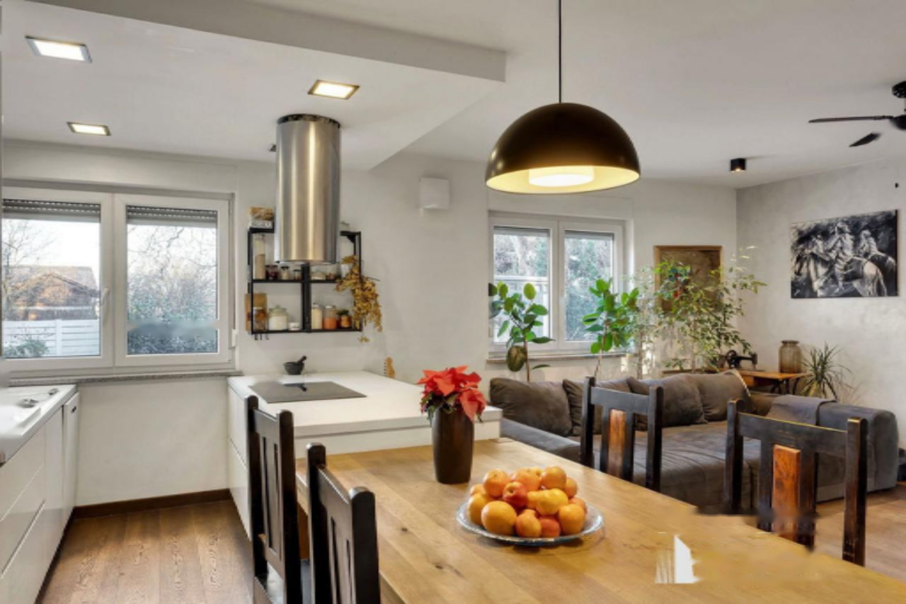 Жилье отличается эффективной звуковой и тепловой изоляцией благодаря использованию современных материалов (минеральная вата и стиропор). Встроенная система вентиляции с рекуперацией гарантирует свежий воздух, а сигнализация обеспечивает безопасность. В здании находятся также 8 м² кладовое помещение и два гаражных парковочных места.