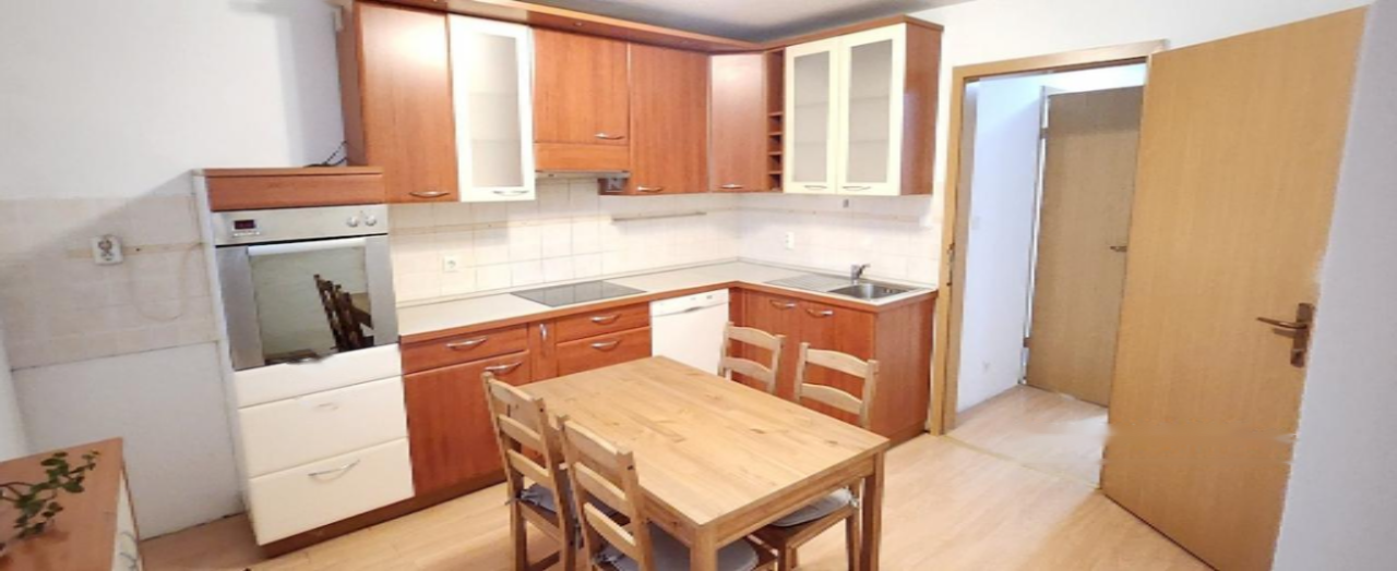 Предлагается к продаже полностью обновлённая трёхкомнатная квартира в реконструированном доме на четыре квартиры в районе Кодельево, Любляна. Квартира расположена в полуподвальной части здания. Несмотря на уровень, пространство светлое благодаря западной ориентации и наличию просторной террасы площадью 19 м², к которой есть доступ из гостиной или спальни.