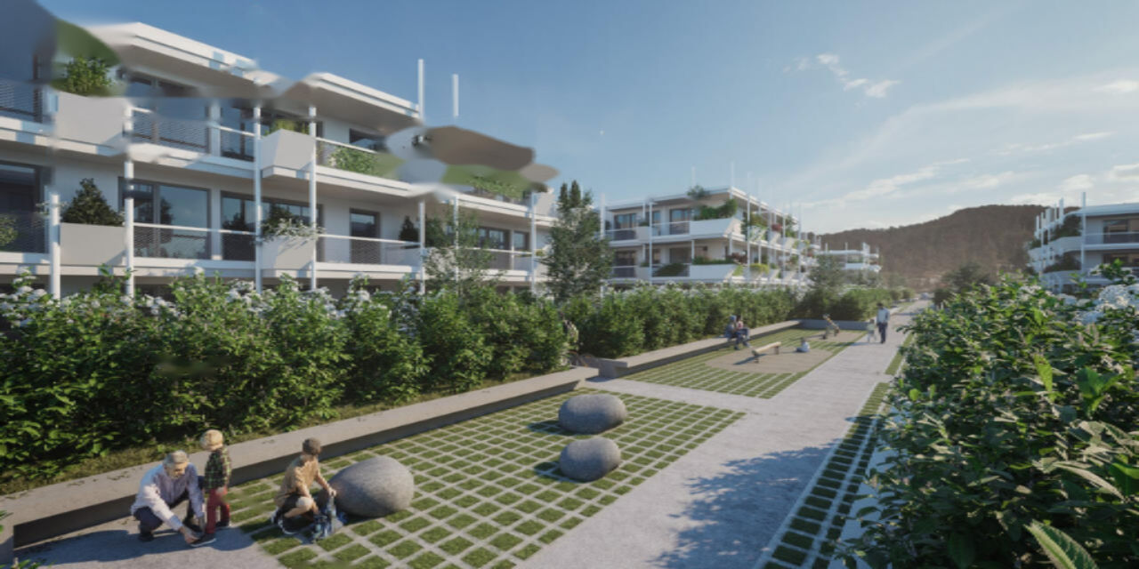 К закрытому для движения транспорта комплексу примыкает просторная зеленая зона с детской площадкой, пешеходной площадью и скамейками для комфортного отдыха и общения. Два парковочных места и возможность установки зарядной станции для электромобиля находятся в подземной охраняемой парковке.