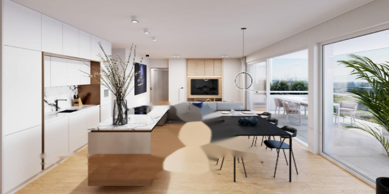 Продается современная четырехкомнатная квартира площадью 183,1 м² в новом жилом комплексе в Юрачковом поселке, районе прославленного архитектурного бюро Ofis. Ввод в эксплуатацию намечен на начало 2026 года. Квартира располагается на первом этаже трехэтажного здания и привлекает продуманной планировкой и просторной террасой площадью 50,7 м².