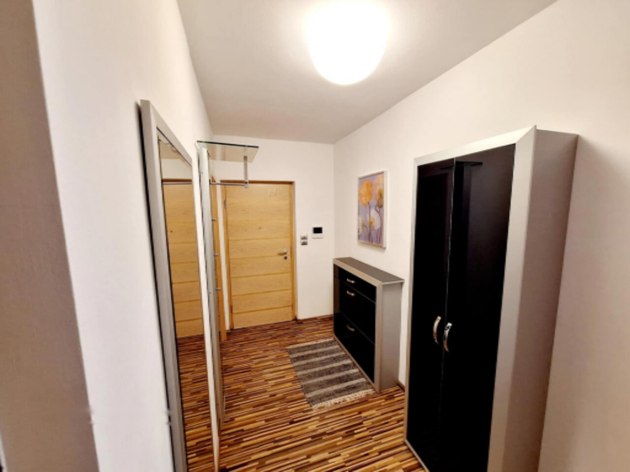 Квартира была полностью отремонтирована в 2011 году: заменены электрические и водопроводные коммуникации, установлены новые окна и двери, современная мебель и оборудование. Общая площадь составляет 76 м², из которых 66,8 м² - жилая, с балконом 2,7 м² и кладовой 6,5 м².
