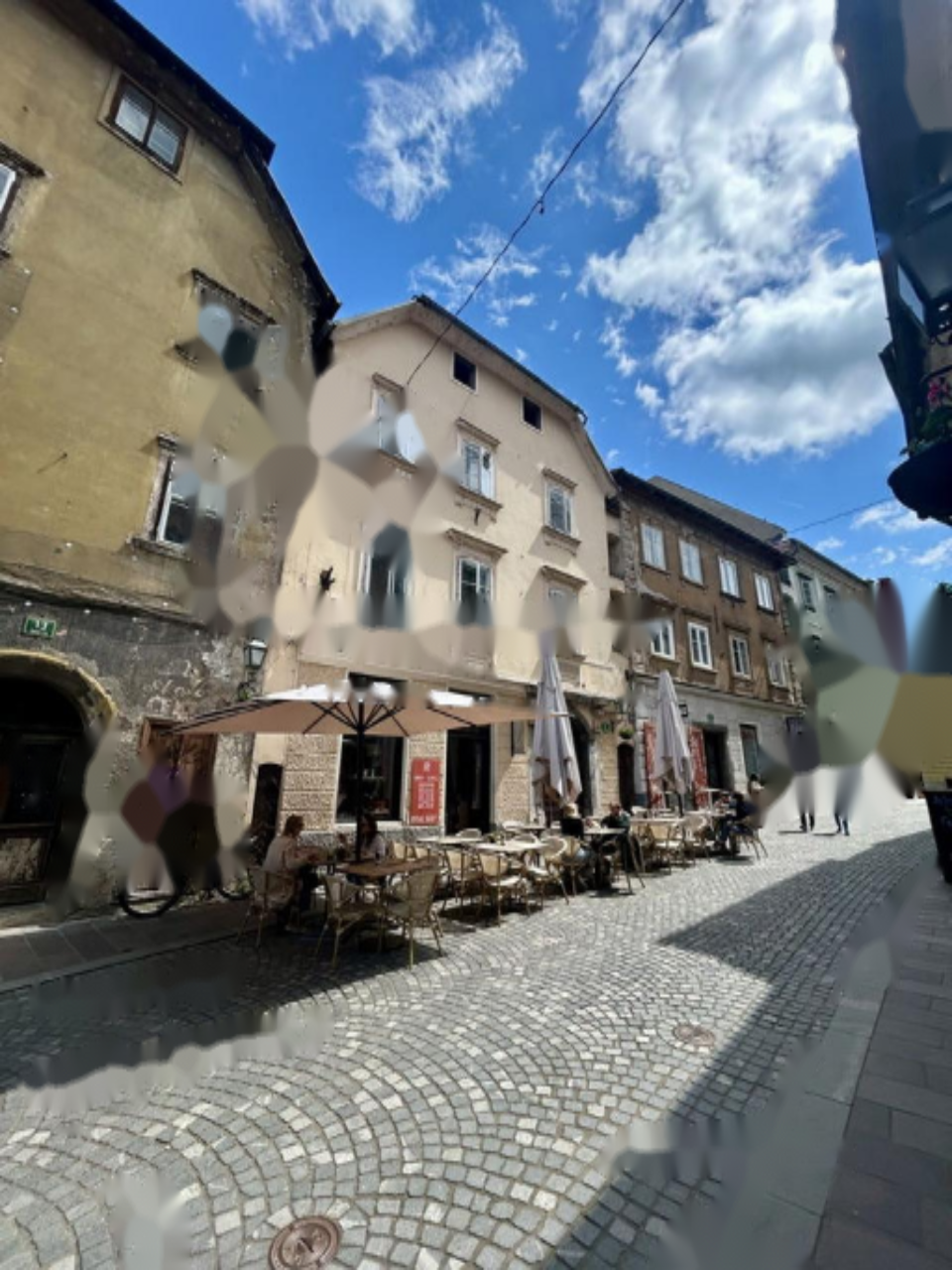 Квартира расположена во втором этаже исторического здания, часть которого предлагает виды на Люблянский замок, а другая — на оживленный рынок. Несмотря на непосредственное расположение в центре города, здесь находится уютное и тихое место.
