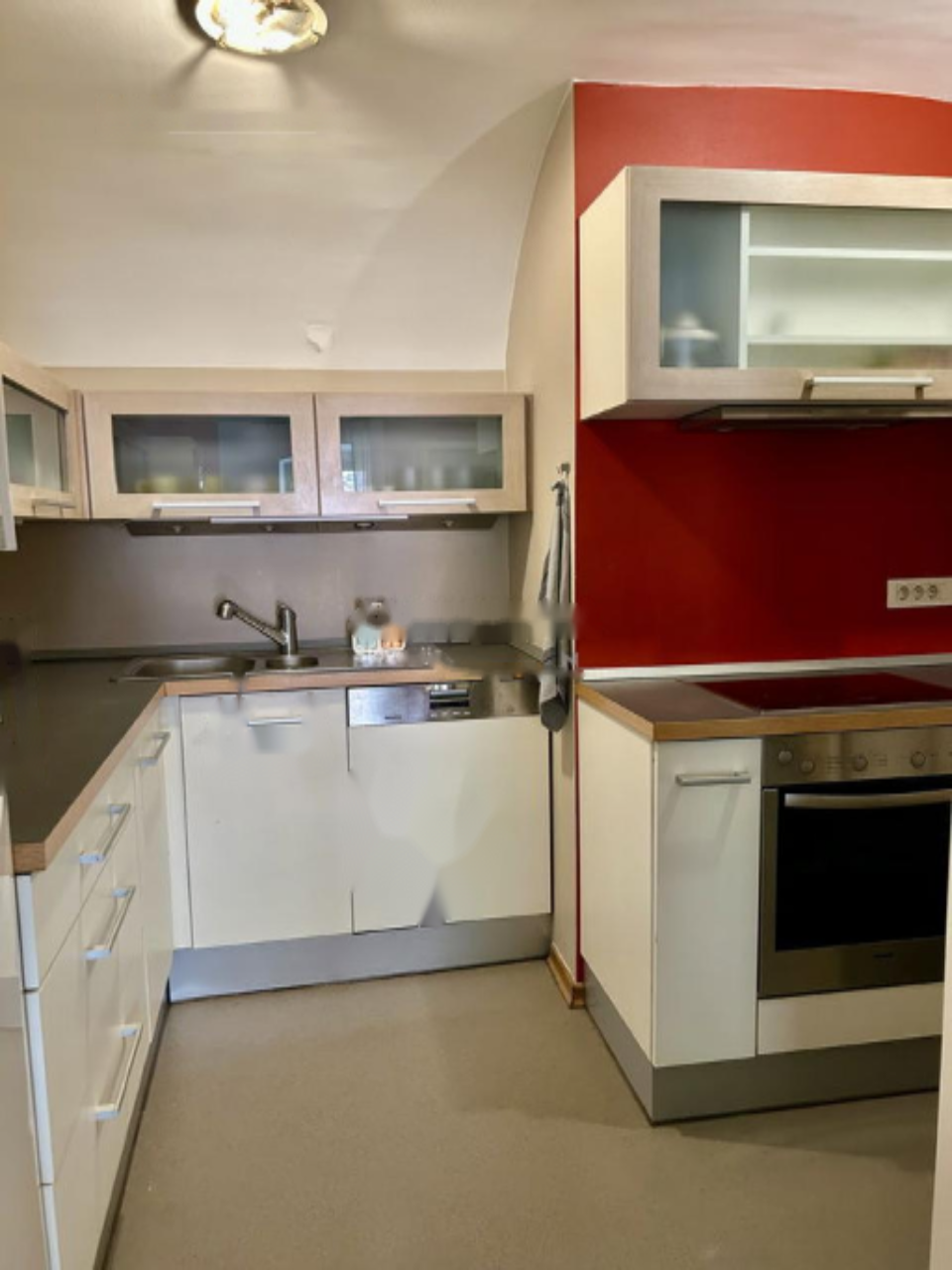 Квартира продается частично меблированной. Обе кухни оснащены встроенной мебелью и современной бытовой техникой (стеклокерамическая плита, духовка, холодильник, посудомоечная машина). В каждой ванной комнате имеется стиральная машина.