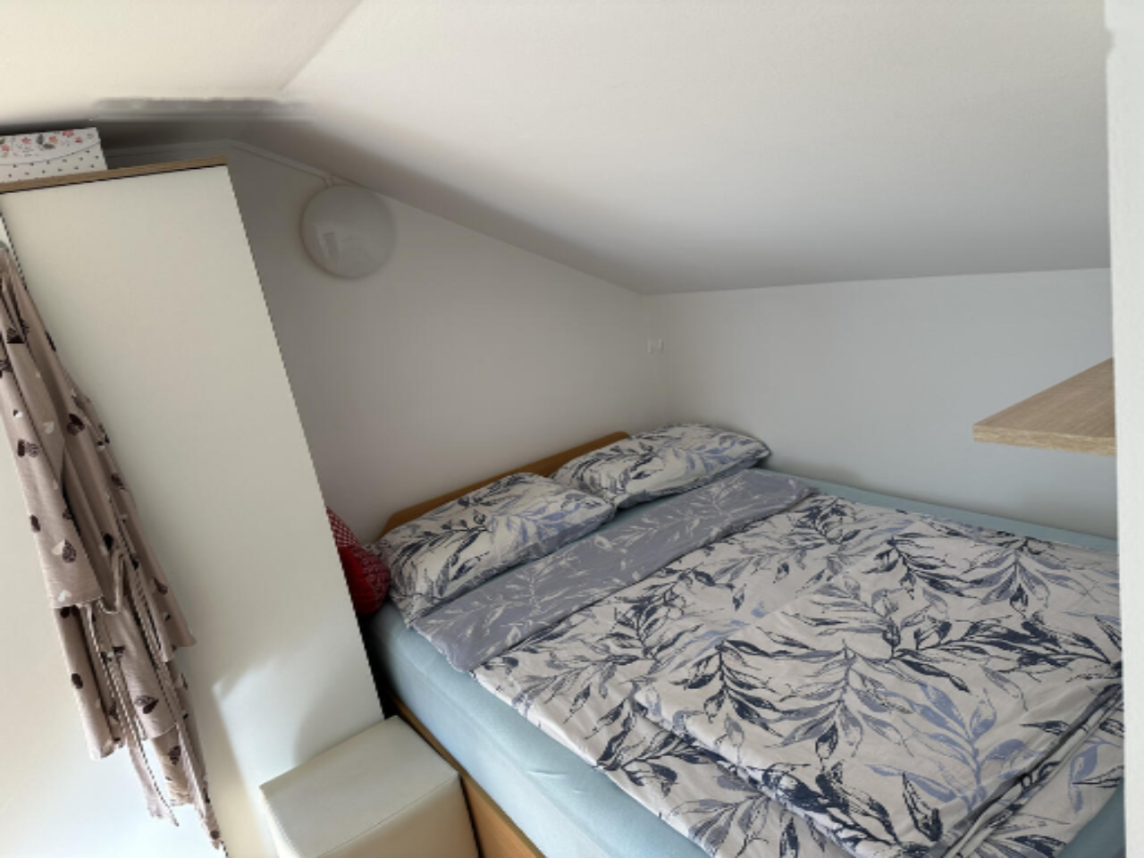 В квартире два светлых и просторных спальных помещения и одна ванная комната. Дополнительно имеется кладовая и приватное парковочное место перед зданием. Пространства отопливаются радиаторами и поддерживаются системой кондиционирования, установленной в 2019 году. Ежегодно система проходит обслуживание, включая чистку и замену газа при необходимости.