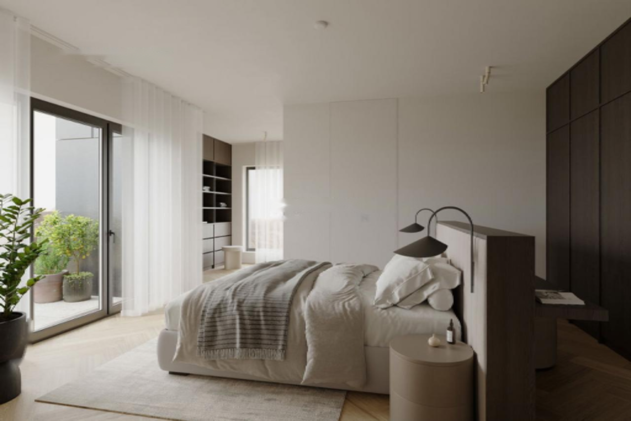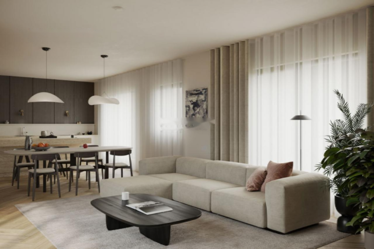 Функциональная планировка квартиры предусматривает просторный холл с выходом на террасу, большой жилой и обеденный зоны, три просторные спальни и два санузла. Высокие потолки и обширные виды создают атмосферу свободы и уюта. Подземный гараж комплекта включает место для парковки двух автомобилей, с возможностью приобретения дополнительного. Также в стоимость включены два собственных стойла для велосипедов.