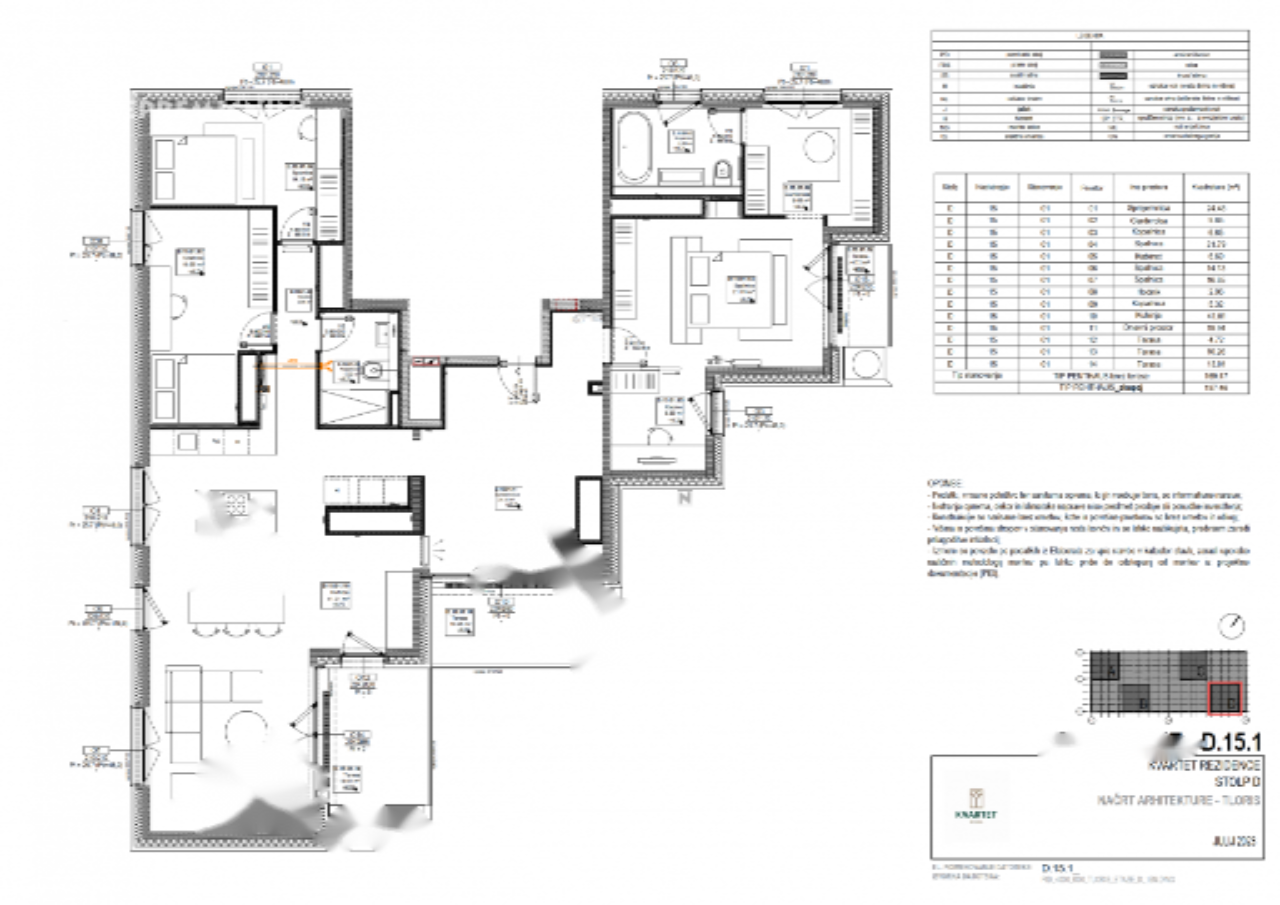 Представляем вашему вниманию роскошное четырехкомнатное пентхаус-апартаменты площадью 197,85 м², расположенное на верхнем, пятнадцатом этаже современного комплекса "Квартет" в районе Шишка. Это исключительное жилье предоставляет уникальную возможность насладиться потрясающими видами на Любляну благодаря просторным террасам и балкону общей площадью 26,34 м².