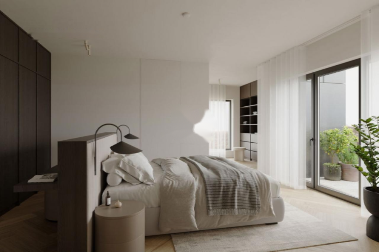 Коридор ведет к первой ванной комнате и двум отдельным небольшим комнатам, которые могут служить детскими, домашним офисом или гостевой спальней. Левее располагается приватная главная спальня со своей гардеробной и ванной комнатой, а также выходом на отдельный балкон — идеальное место для уединения.