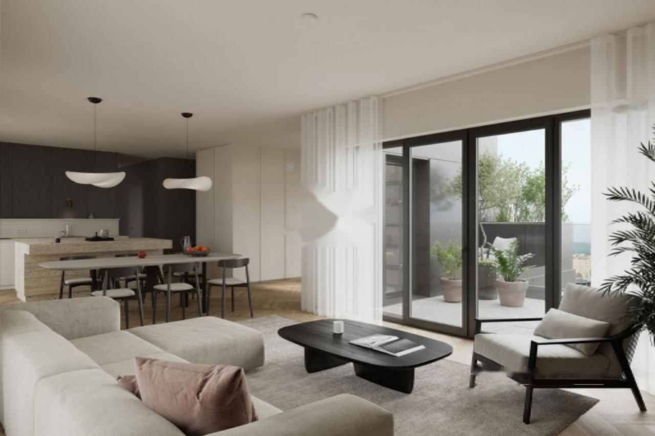Апартаменты включают 171,51 м² внутренней площади, дополненной подвалом, что увеличивает общую площадь до 201,05 м² брутто. Просторный холл приветствует вас великолепным видом на город и предоставляет доступ на первую террасу, где можно насладиться утренним кофе или вечерним отдыхом. Центральная дневная зона включает светлую гостиную с современной кухней и кухонным островом, откуда открывается выход на вторую террасу, идеальную для отдыха на свежем воздухе и общения с друзьями.