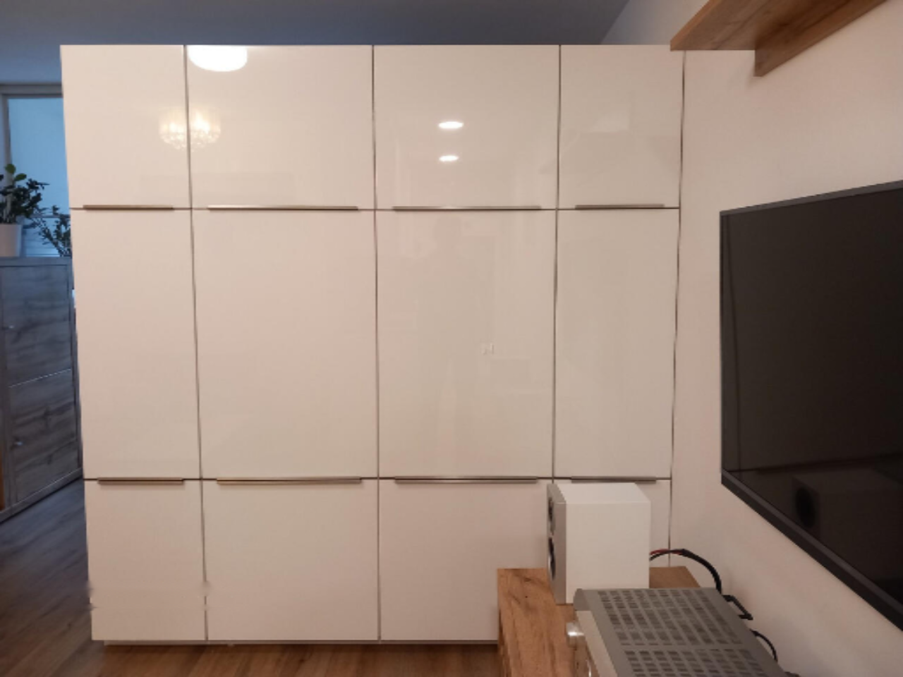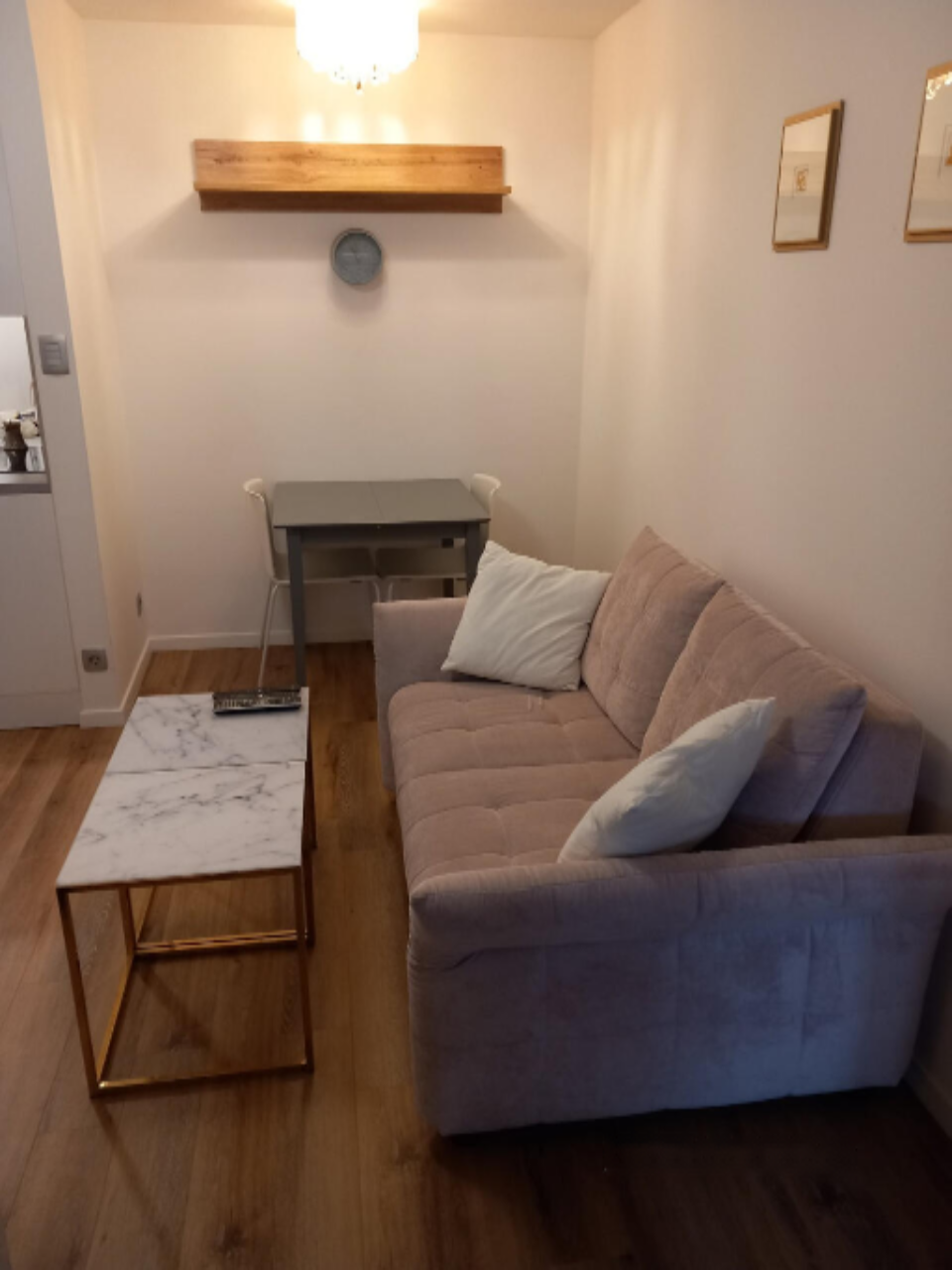 Квартира имеет зону отдыха с раскладным диваном, просторную гардеробную, скрытую за раздвижными дверями, и полностью оборудованную кухню длиной 2,3 метра. Застекленный балкон с раздвижными стеклянными дверями добавляет дополнительное пространство для отдыха. В ванной комнате установлена ванна и новейшая стиральная машина. Также имеется обеденный уголок с раздвижным столом.
