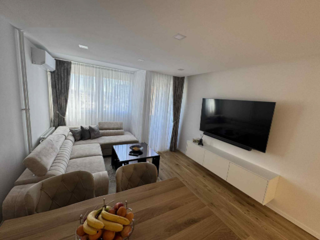 Квартира занимает шестой этаж из десяти, обеспечивая великолепные виды и позволяя наслаждаться светом в течение всего дня. Прекрасная планировка включает кухню совмещенную с гостиной, из которой можно выйти на небольшой балкон, две детские комнаты, родительскую спальню, отдельный туалет и ванную комнату.