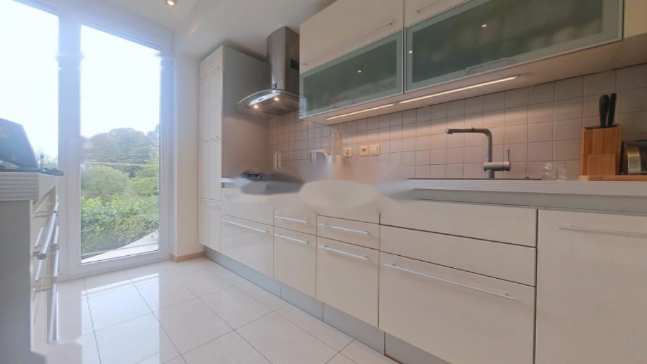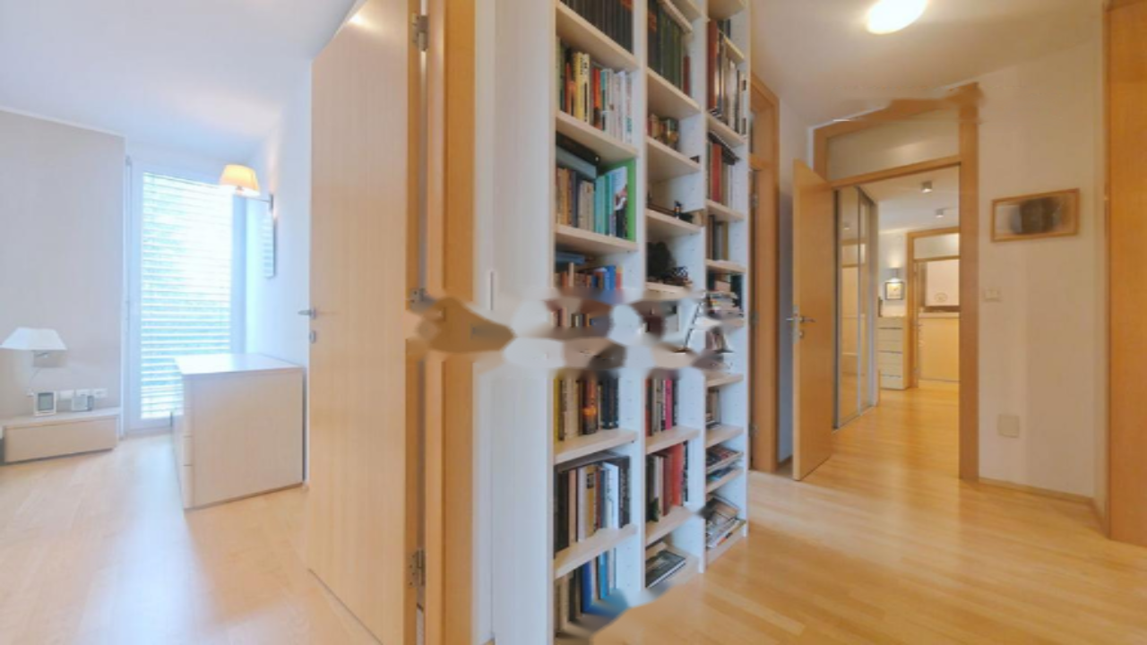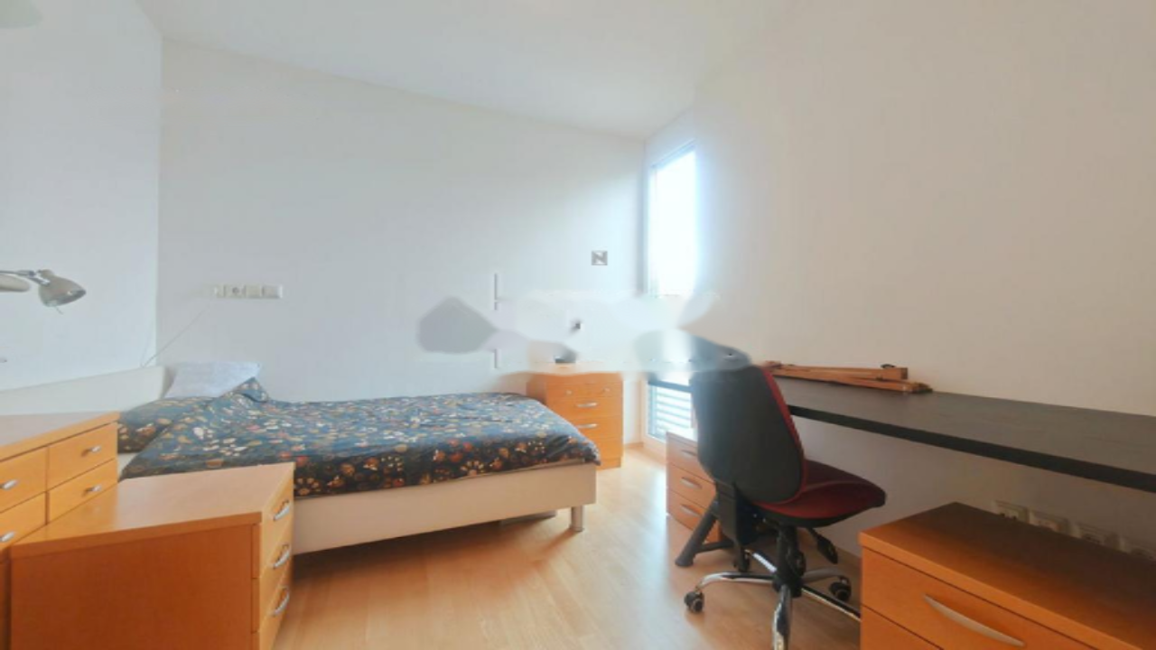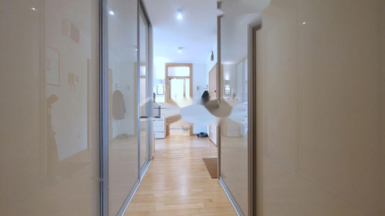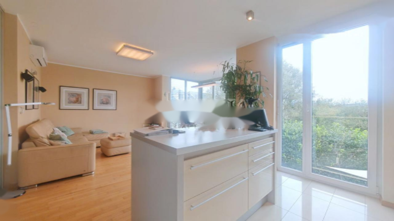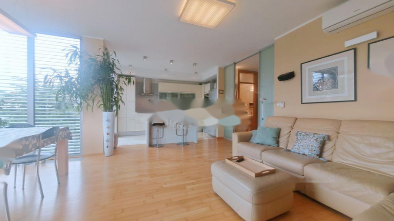 Квартира имеет продуманную планировку: просторный входной холл с гостевым санузлом ведет в объединенное пространство гостиной, кухни и обеденной зоны площадью около 40 м². Отдельный коридор с встроенными шкафами соединяет зоны с четырьмя спальнями, одна из которых проходная. Также имеются утилитарная комната с прачечной и просторная ванная комната с ванной и душем. Высота потолков составляет 2,7 м, что добавляет объема и света.