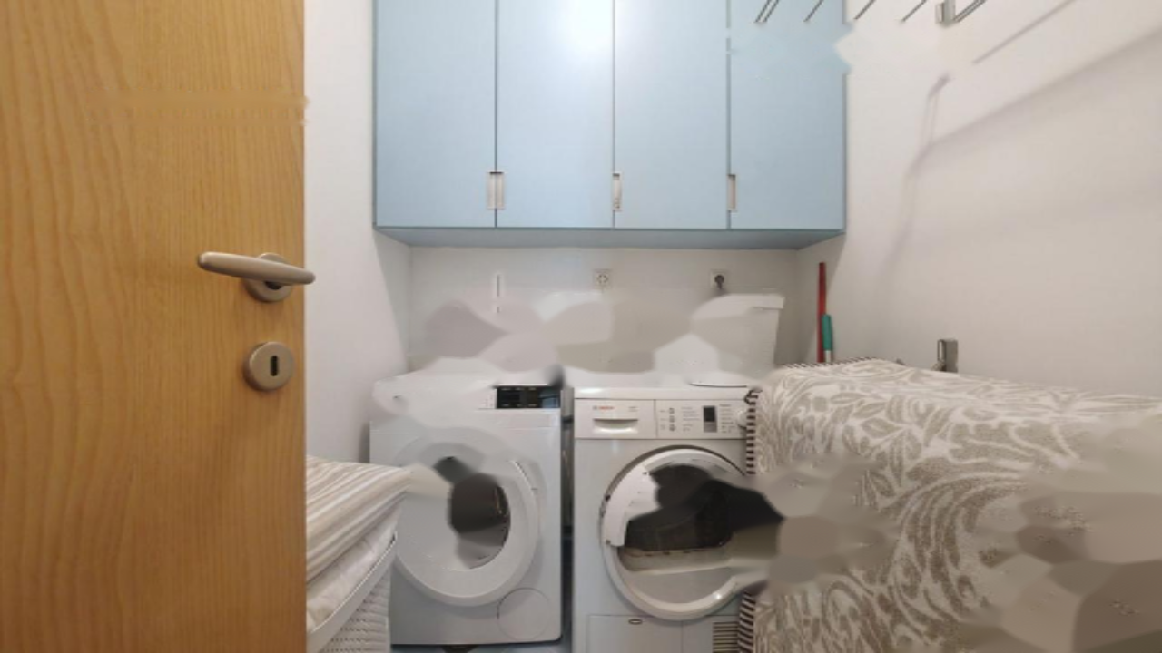 Принадлежности квартиры включают отдельный гараж (14,32 м²) с парковочным местом перед ним (15 м²), а также хранилище (5,01 м²), соединенное с гаражом. Жители имеют доступ к велопарковке, а для гостей предусмотрено достаточное количество бесплатных парковочных мест в районе. Расходы на коммунальные услуги составляют примерно 300 евро в месяц.