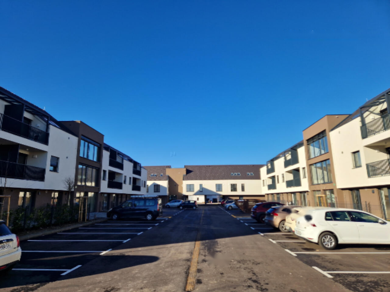 Для каждой квартиры предусмотрено два платных парковочных места. Жилой комплекс, состоящий из трехэтажных зданий, имеет все удобства: бетонные лестницы, лифт, комбинированную крышу. Также предусмотрены современные инженерные решения, такие как: