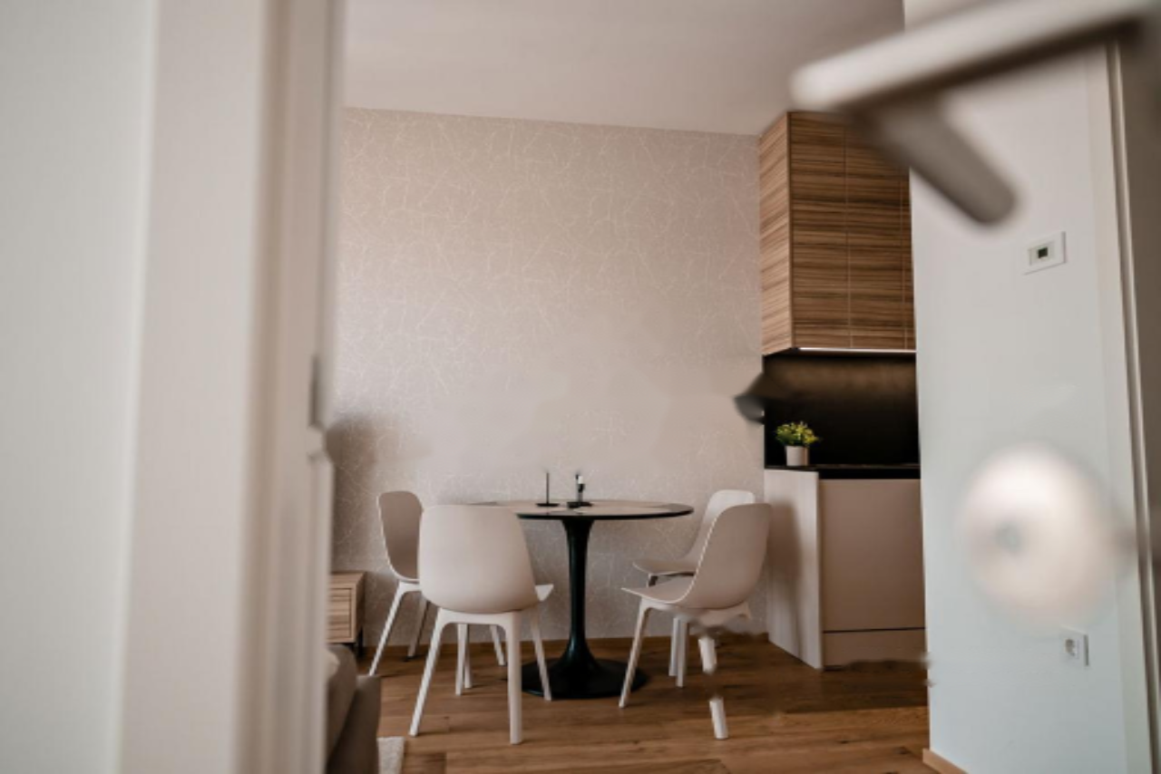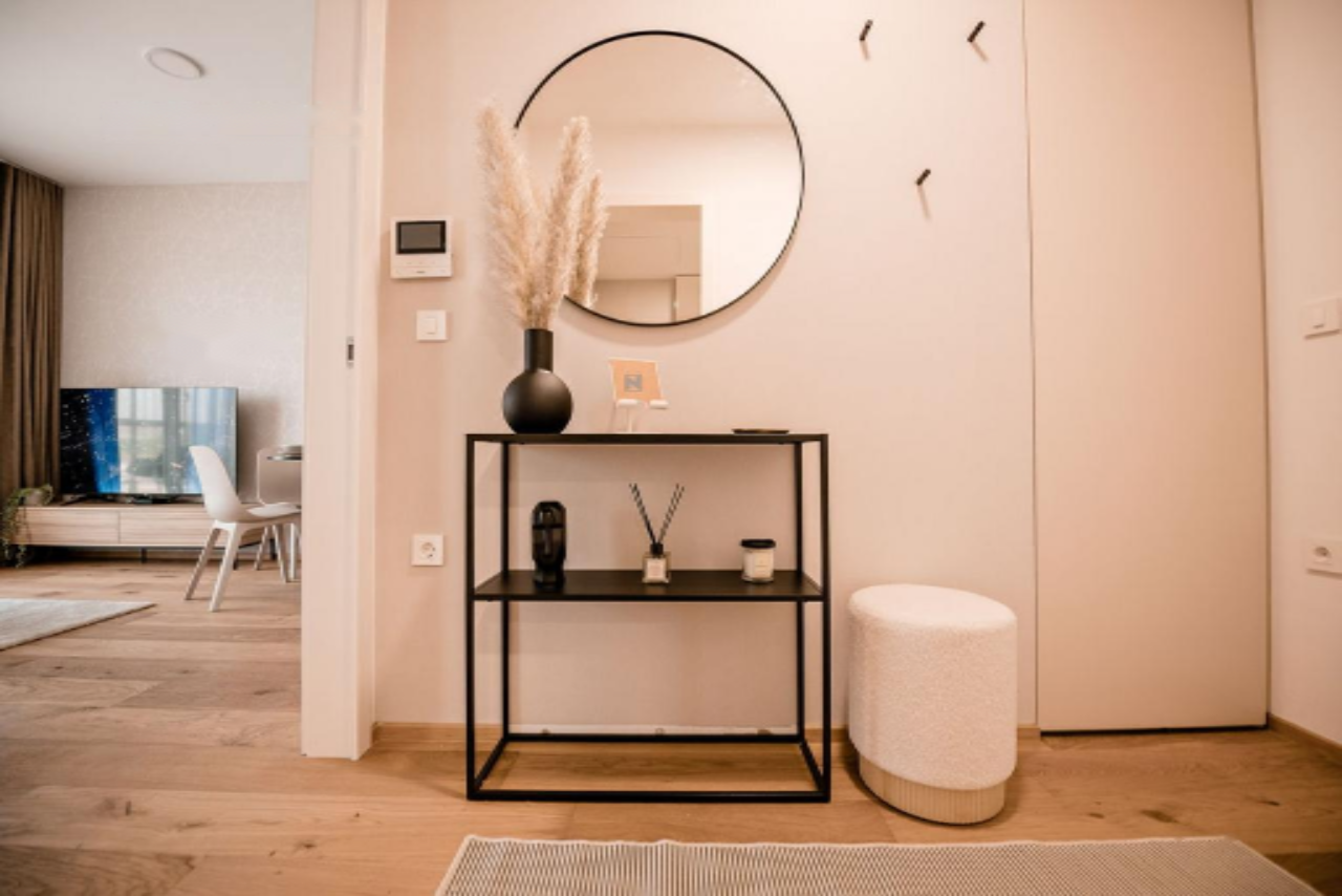 Продается современная двухкомнатная квартира площадью 46,4 м² в центре Любляны, в престижном жилом комплексе "Резиденция Масарыкова". Квартира расположена на втором этаже современной постройки с лифтом и гаражом, обеспечивая высокий уровень комфорта проживания.