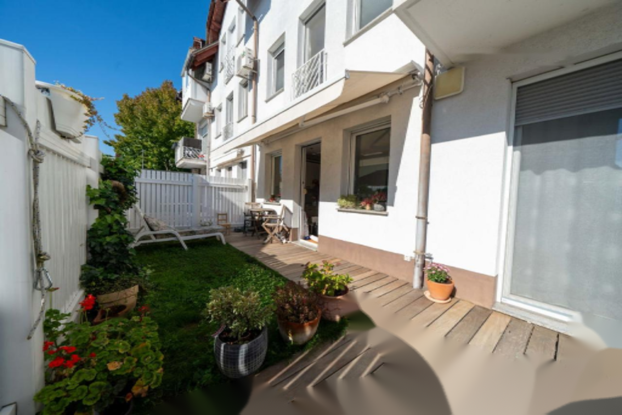 Расположение квартиры, безусловно, выделяется: это популярный и спокойный район с развитой инфраструктурой. В пешей доступности находятся зелёные зоны и прогулочные дорожки, а также обеспечен быстрый и удобный доступ к кольцевой автодороге. Для автомобилей предусмотрены бесплатные парковочные места прямо перед домом, также возможно приобретение гаража за дополнительную плату в размере 30 000 евро.