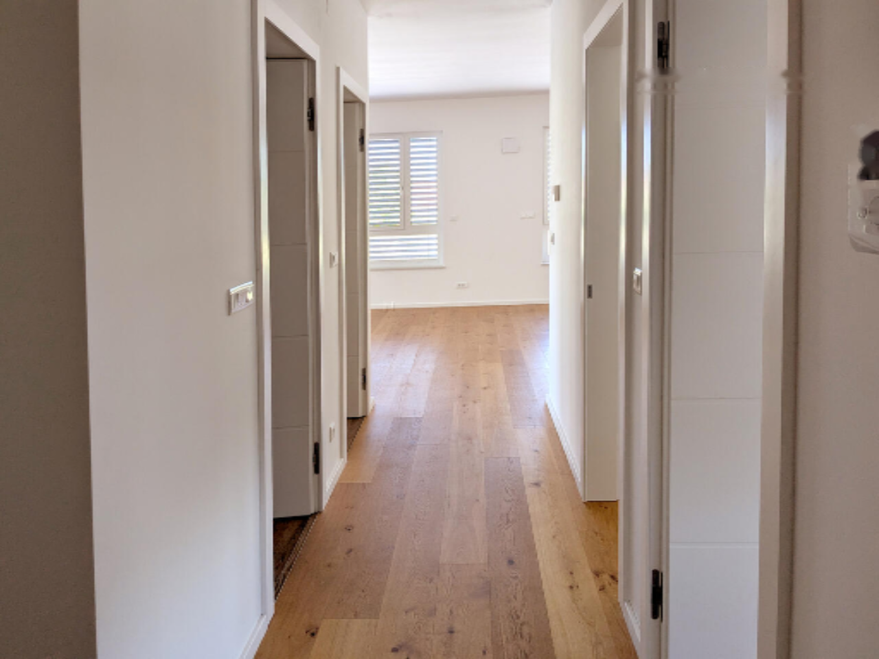 Функциональная планировка общей жилой площади 80,1 м² включает в себя просторную кухню с обеденной зоной, совмещенную с гостиной, из которой можно выйти на террасу площадью 13,4 м². Также здесь три спальни, две ванные комнаты, отдельная хозяйственная комната и удобный коридор с выходом на террасу. Квартира дополнительно оснащена собственным кладовым помещением площадью 4,4 м², расположенным на том же этаже рядом с лифтом.