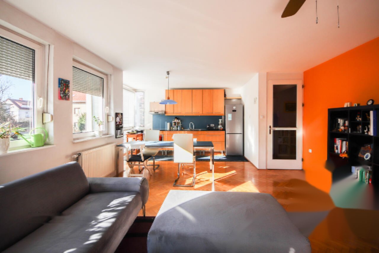 Представляем вашему вниманию трехкомнатную квартиру площадью 102,5 м² в одном из наиболее популярных и спокойных районов Любляны. Квартира находится в пяти минутах от центра города, за Бежиградом, в небольшой многоквартирной постройке 1998 года.