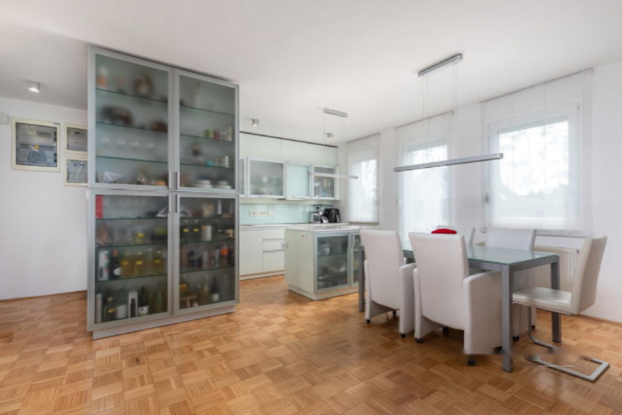 Современная трехкомнатная квартира с гаражом в престижном районе Долги Мост, Любляна. Полностью обновлена в 2015 году и готова к заселению. Общая площадь составляет 86,7 м², включая два просторных балкона с общей площадью 12 м².