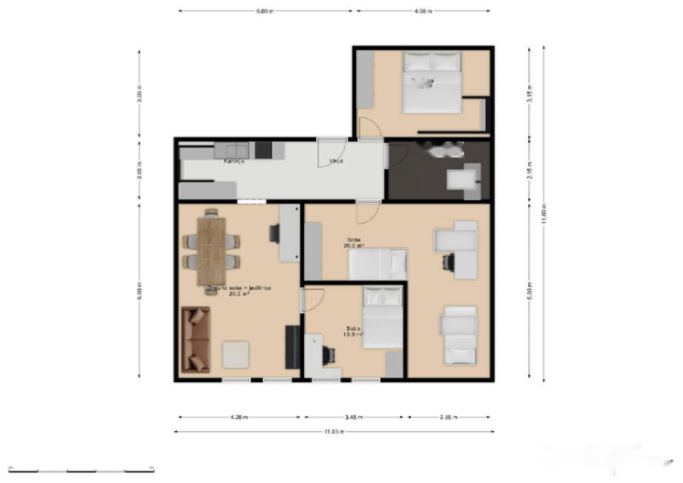 Продается уникальное старинное многокомнатное жилье в центре, площадью 77,5 м² с 3 спальнями. Построенное в 1800 году, здание было обновлено в 2015 году. Квартира расположена на втором этаже из двух. Имеется просторный коридор, три отдельные спальни, кухня, столовая, совмещенная с гостиной, ванная комната и подвал. Общая брутто-площадь составляет 111 м².