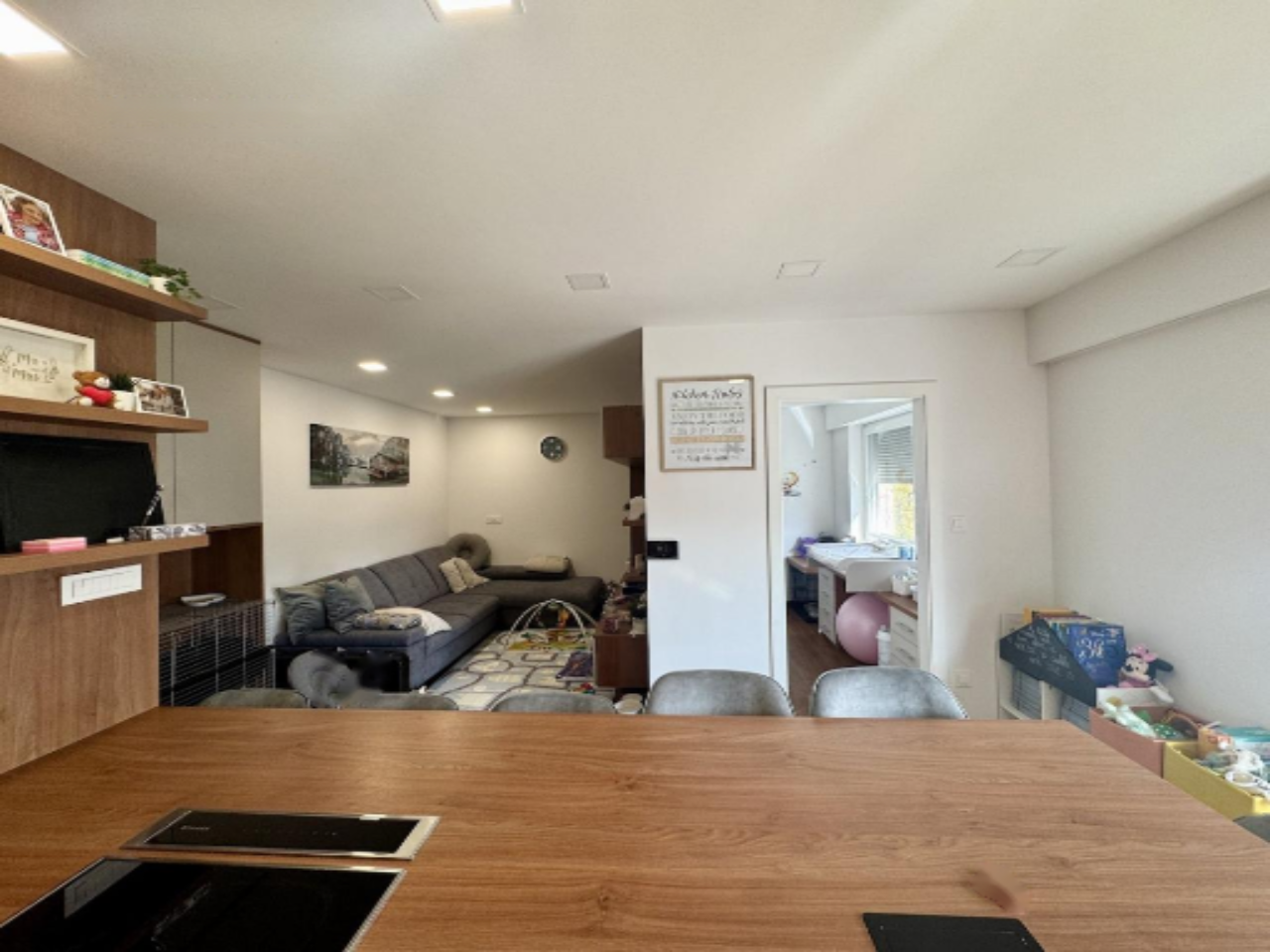 Квартира светлая и ориентирована на восточную сторону, что обеспечивает много дневного света. Внутреннее пространство включает прихожую со встроенным шкафом, кухню с обеденной зоной, уютную гостиную, комнату для детей, санузел с ванной и помещение для хозяйственных нужд, спальню и гардеробную комнату. В подвальном помещении находится обновленный склад с окном площадью 11,9 м².
