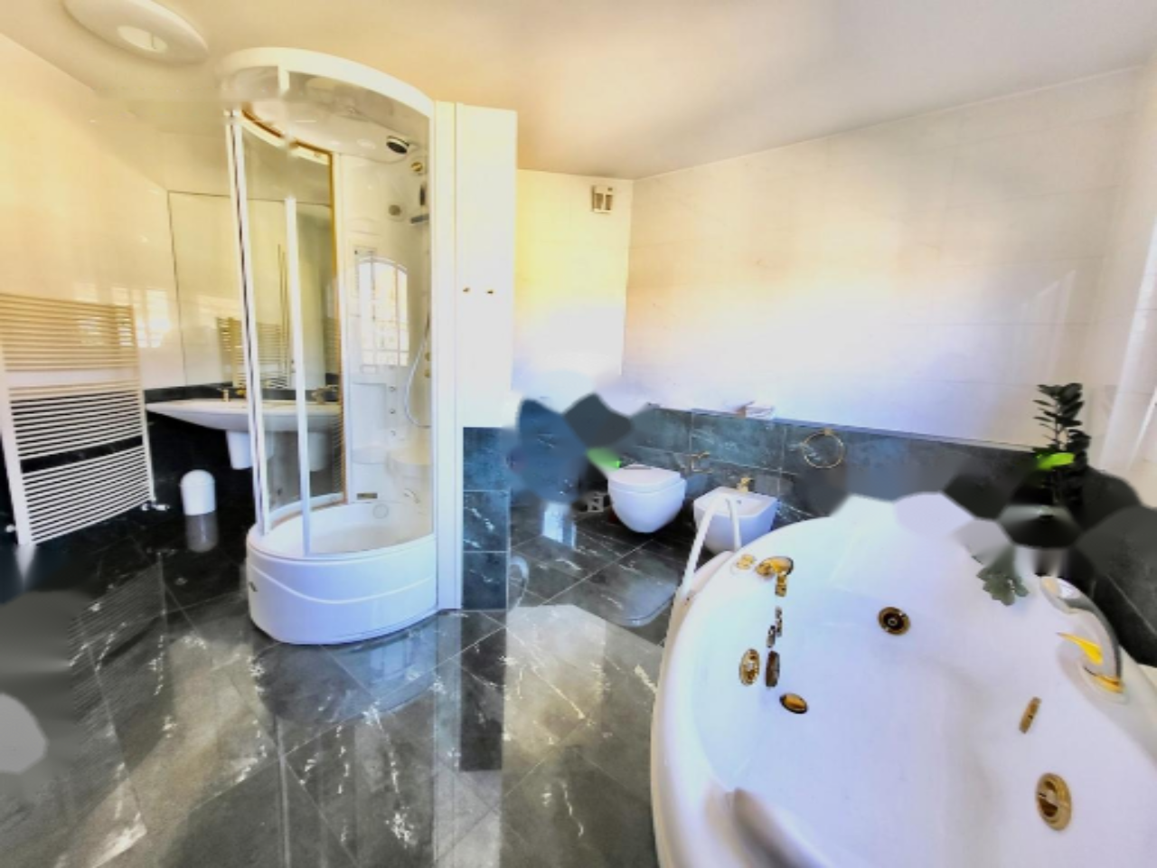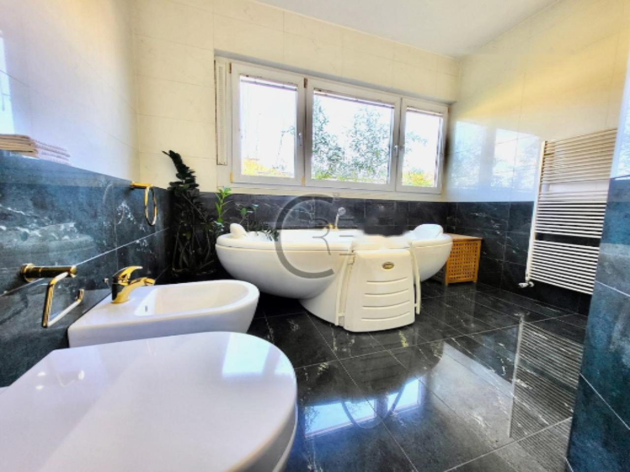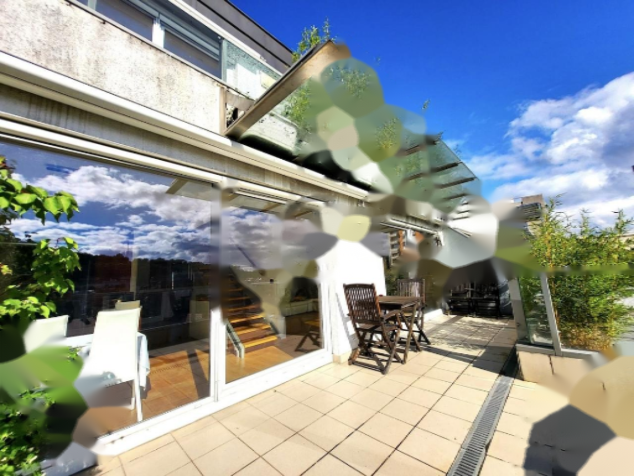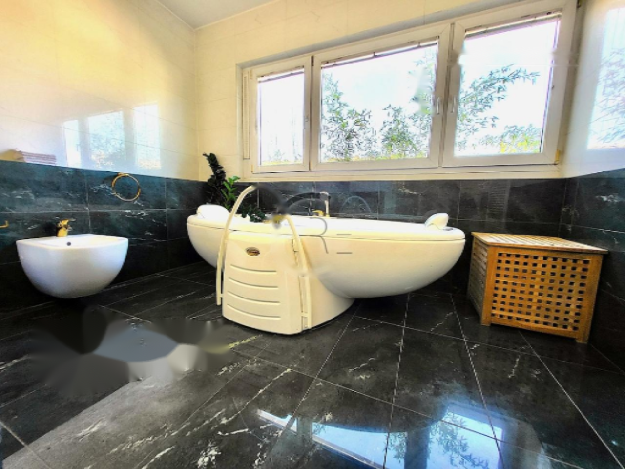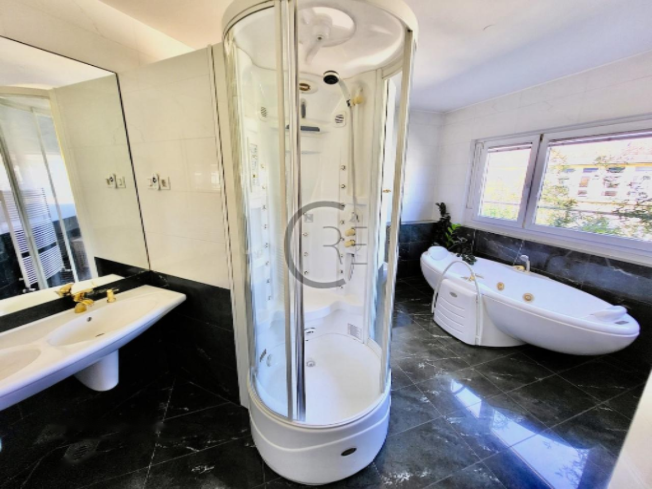 К квартире прилагаются два приватных парковочных места в подземном гараже и подвал площадью 11 м². В здании имеется лифт и домофонная система. Удобства включают кондиционирование воздуха и отопление через центральный трубопровод.