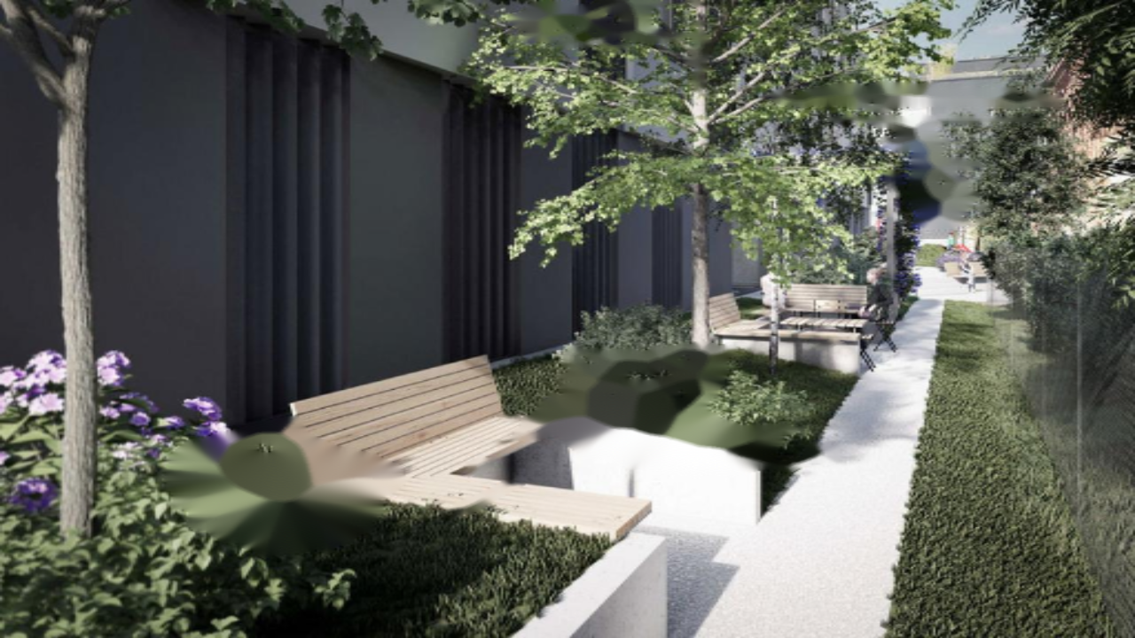 Комплекс включает благоустроенное дворовое пространство с зелёными зонами, местами для отдыха и детской площадкой. Обитателям доступны места для хранения велосипедов и подготовка для зарядных станций электромобилей. На первом этаже предусмотрены 12 кладовых для сезонного хранения.