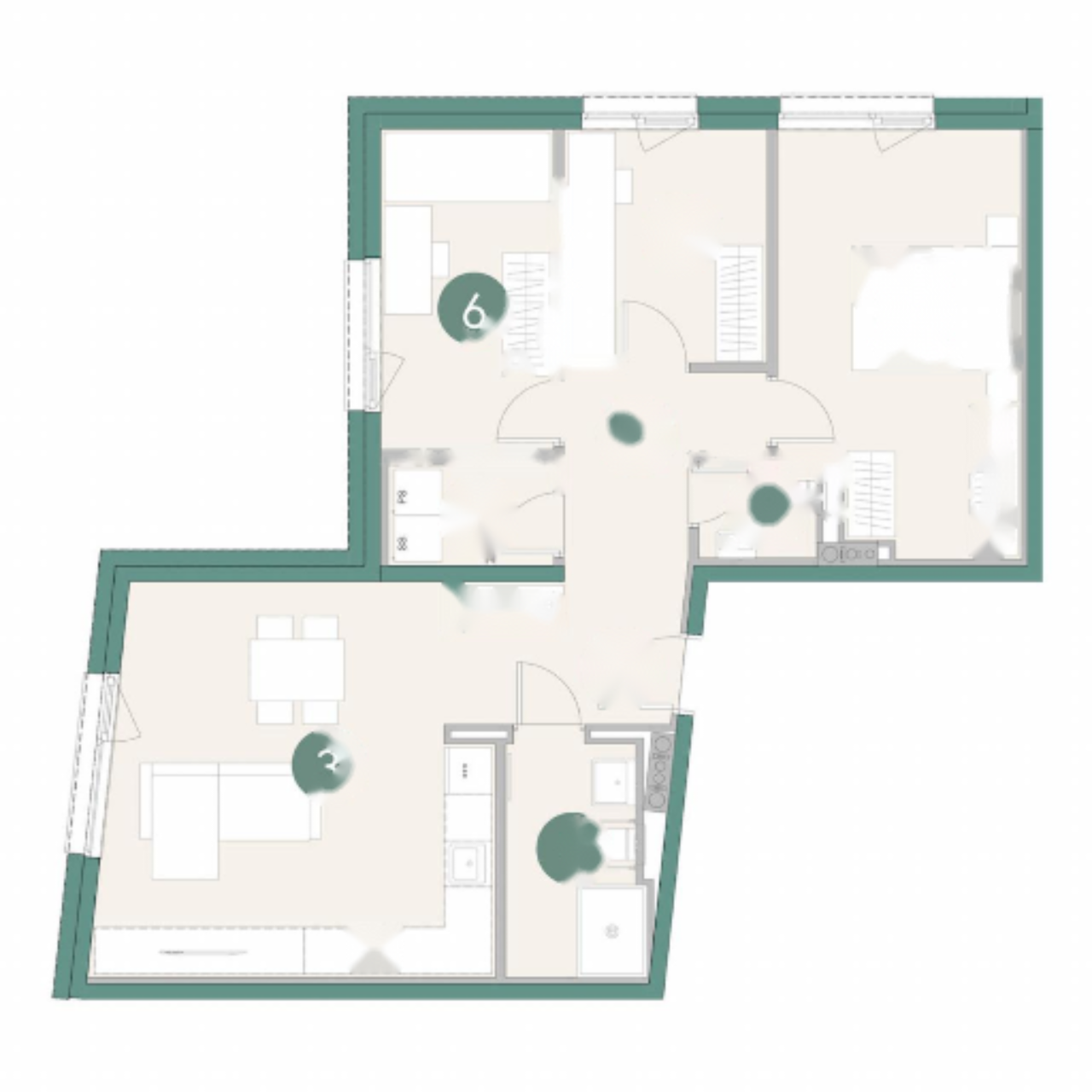 Комплекс будет иметь два отдельных входа, каждый с лифтом, обеспечивающим доступ к шести жилым и двум подземным этажам. Каждому жилью причитается гаражное место, включенное в стоимость.