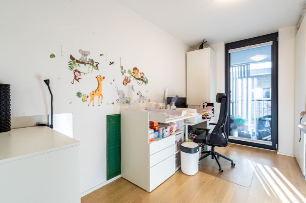 Это современное жилье площадью 102,9 м² включает просторный балкон, с которого открывается вид на панораму города и Люблянский град. В комплексе также имеется общий фитнес-центр и детская площадка во внутреннем дворе, а также комната для хранения велосипедов. Основными преимуществами является функциональная планировка, продуманное распределение просторных жилых зон и высокая освещенность помещения.