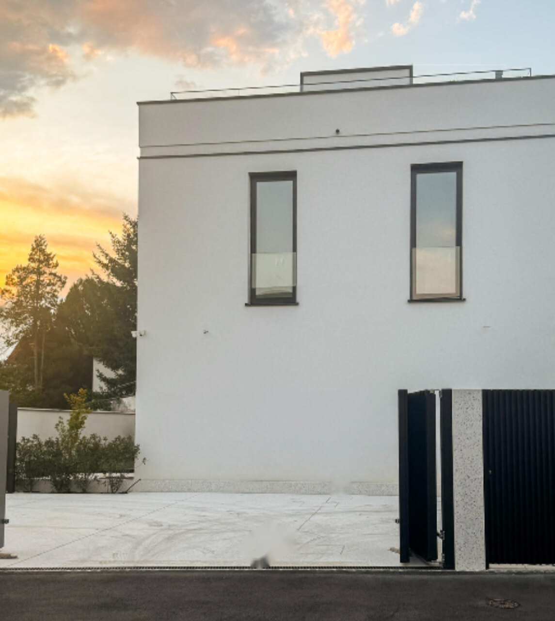 Энергоэффективность гарантируется тепловым насосом и материалами высшего класса. Ландшафтный дизайн включает ухоженные газоны и зеленые зоны . На территории предусмотрены два парковочных места, подготовка для зарядки электромобилей и наружный кран для мойки авто.