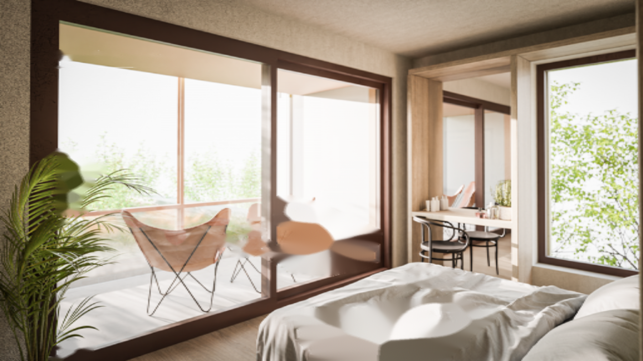 Квартира обладает светлыми и просторными жилыми помещениями. В большинстве комнат предусмотрен наружный балкон или терраса, позволяющие наслаждаться окружающими пейзажами. Максимальная интеграция зелёных пространств в комплексе способствует поддержанию свежего воздуха и комфортной температуры в любое время года.