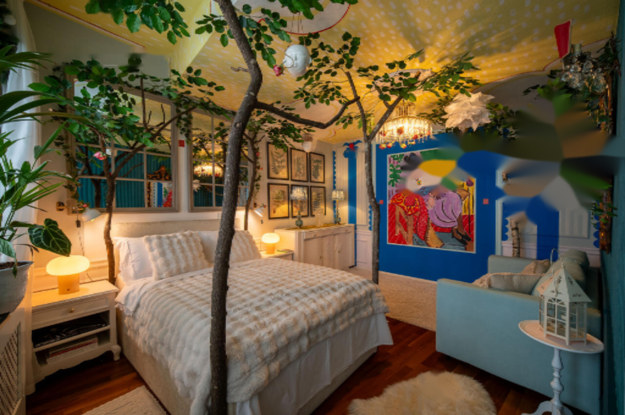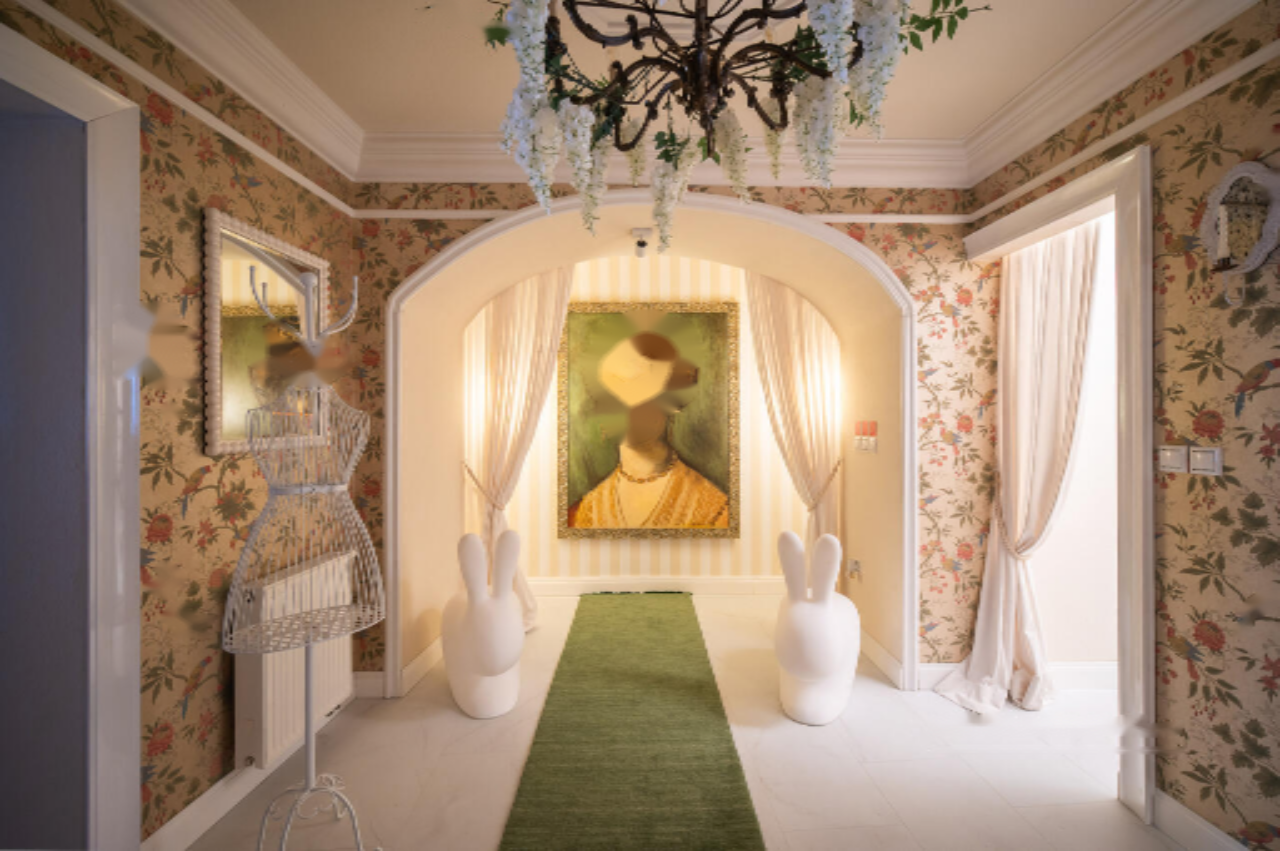 Квартира занимает весь второй этаж трёхэтажного строения и включает просторную зону гостиной, столовую и кухню, ориентированные на площадь. Три спальные комнаты, одна из которых с видом на зелёный внутренний двор, создают приватную атмосферу. Пространства наполнены светом и уютом благодаря высоким потолкам, искусным настенным росписям и тщательно подобранной мебели.