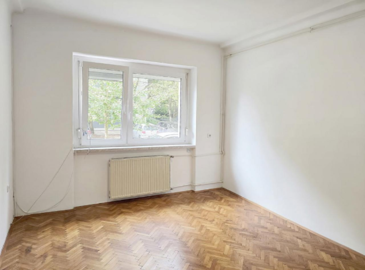 Просторная трехкомнатная квартира площадью 75 м² расположена в тихом районе района Шишка, недалеко от небольшого парка. Здание было построено в 1948 году, квартира находится на высоком первом этаже из пяти.