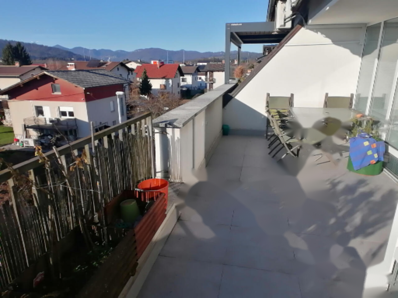 Предлагается просторная четырехкомнатная квартира в районе Долги Мост. Жилая площадь — 90 м² и включает в себя светлую и солнечную террасу площадью 18 м², а также кладовую размером 4 м². Удобное расположение на втором этаже двухэтажного дома, построенного в 2001 году.