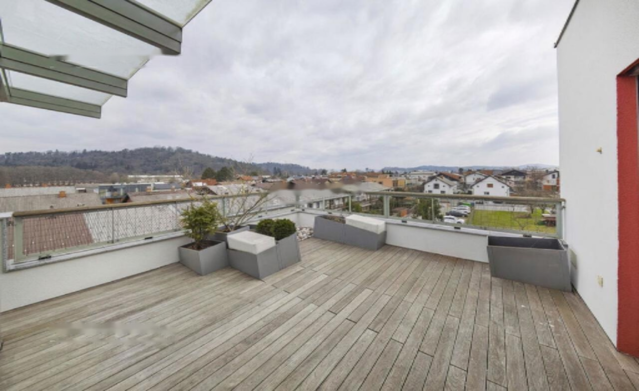 Квартира площадью 238,5 м², из которых 115,1 м² занимают жилые площади, располагается вдали от дороги с великолепными открытыми видами на Рожник, Альпы и Люблянский замок. Включает три спальни, в том числе главная спальня с собственной гардеробной и ванной комнатой. Одна из комнат имеет выход на балкон. Просторная гостиная соединена с кухней и переходит в остеклённый зимний сад с дополнительной жилой зоной и столовой. Сад оснащён мультимедийной системой, а также возможностью затенения и выхода на террасу с автоматизированной системой полива растений.