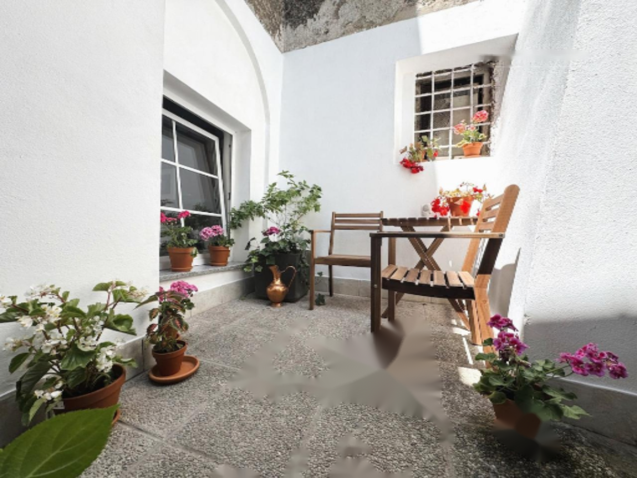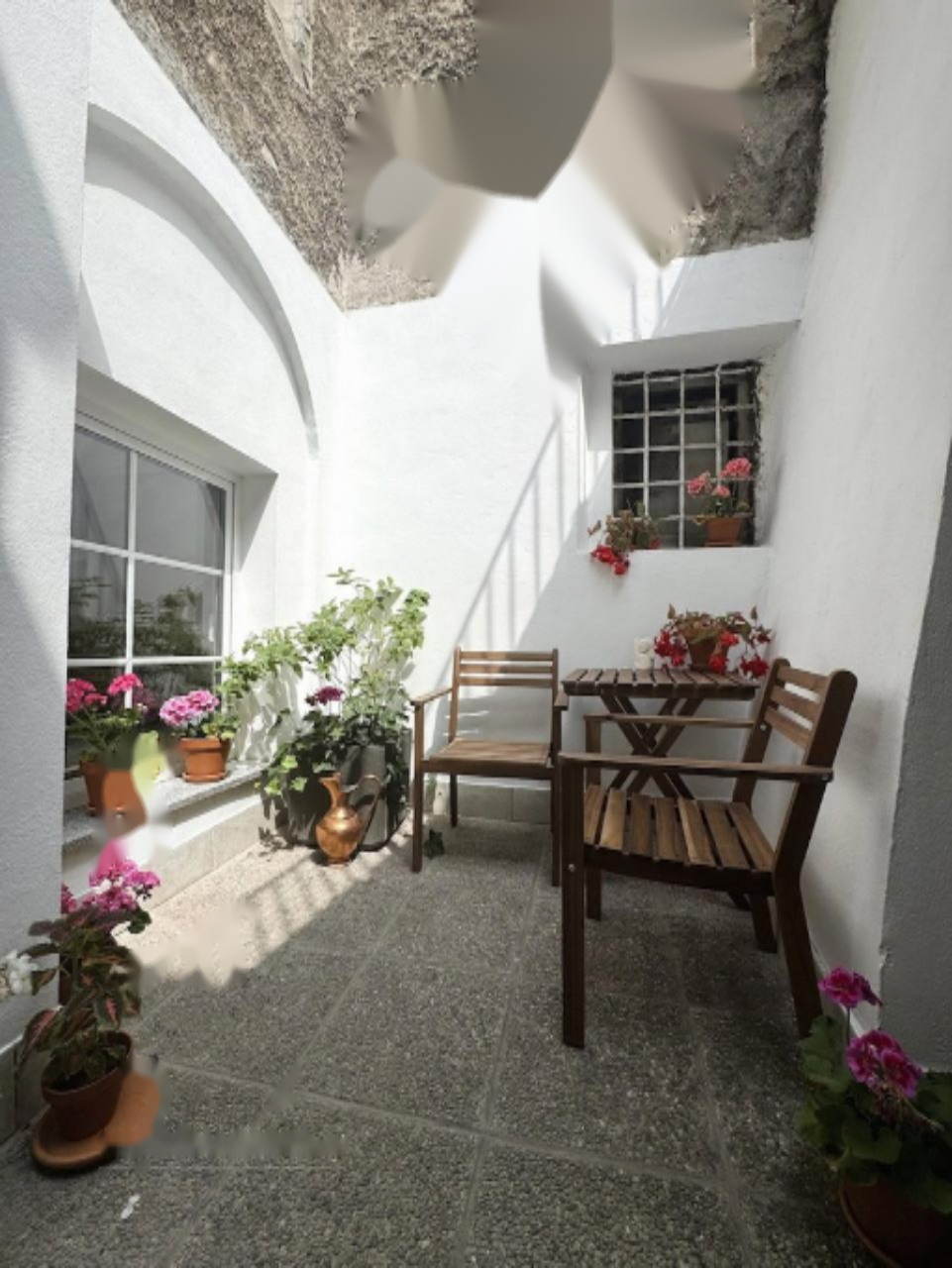 Войдя внутрь, вы попадёте в просторный коридор с множеством мест для хранения вещей. Слева расположен совмещённый жилой и обеденный зал и две спальни. Направо - ванная комната. Прямо по коридору стеклянные двери открываются в каменное помещение с мансардным окном, из которого можно сделать зимний сад или рабочий кабинет. Отсюда двери ведут на уютный внешний уголок, погружённый между историческими стенами с обилием уединённости.