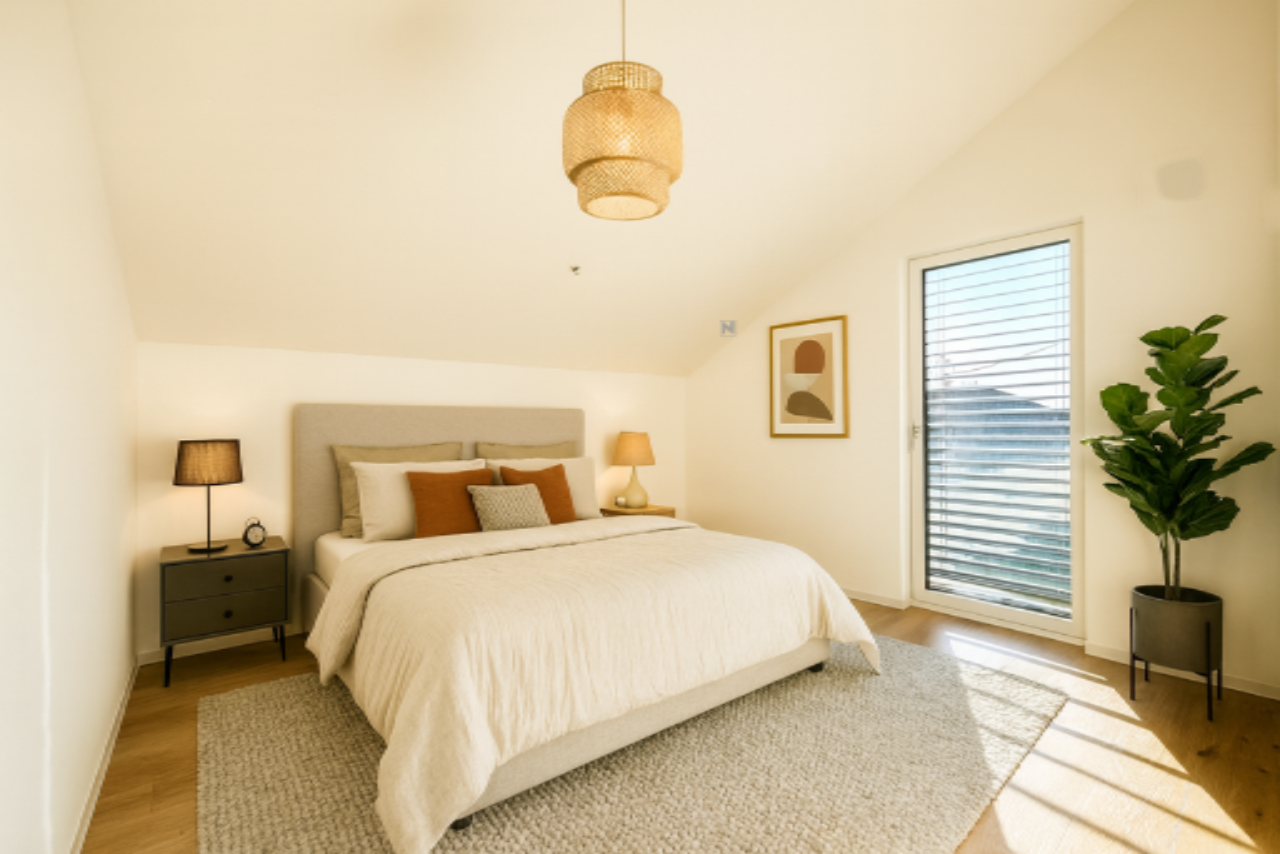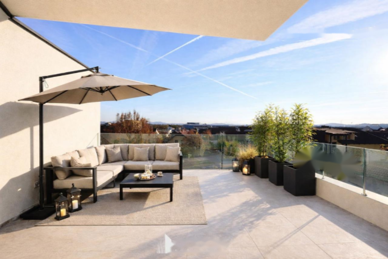 Квартира общей площадью 109 м² расположена на втором этаже двухэтажного дома. Жилая площадь составляет 83,27 м², к которой примыкает терраса размером 15,96 м², а также коридор 7,59 м² и внешнее хранилище 3,07 м². Большие окна и южное расположение помещения наполняют квартиру солнечным светом, а вид на Любляну открывается прямо из гостиной, которая соединена с кухней и столовой. Терраса предоставляет идеальное место для отдыха, общения или утренней чашки кофе на солнце. Практичная планировка двух спален и ванной комнаты обеспечивает приватность, а внешнее хранилище добавляет функциональности.