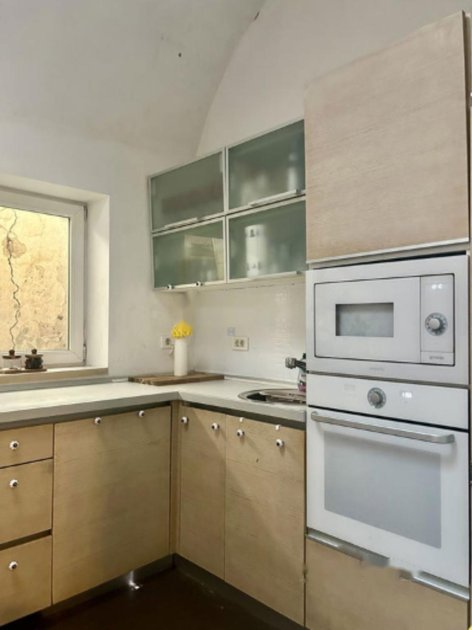 Квартира разделена на две самостоятельные единицы, каждая из которых оборудована собственной кухней и ванной комнатой, что обеспечивает полную функциональность и приватность. Первая, меньшая единица включает в себя: