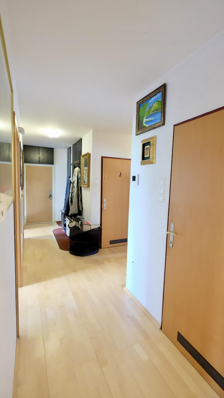 Просторная и светлая четырехкомнатная квартира площадью 90,7 м², расположена в спокойном районе на Фужинах, была построена в 1986 году и частично обновлена в 2005 году. Квартира находится на третьем этаже четырехэтажного дома без лифта и привлекает своим балконом площадью 5,9 м², где можно наслаждаться южным солнцем и видом на природу .