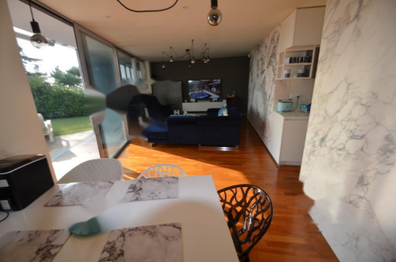 Апартамент включает в себя: просторную прихожую, ванную комнату с туалетом и душем , две изысканные спальни ️, и большую гостиную с кухней и столовой ️, откуда можно выйти на просторную террасу и зелёный сад. Апартамент полностью меблирован и имеет современное оборудование. Южная ориентация обеспечивает максимальный комфорт и добавляет особое очарование, позволяя наслаждаться отдыхом на большой террасе с садом .