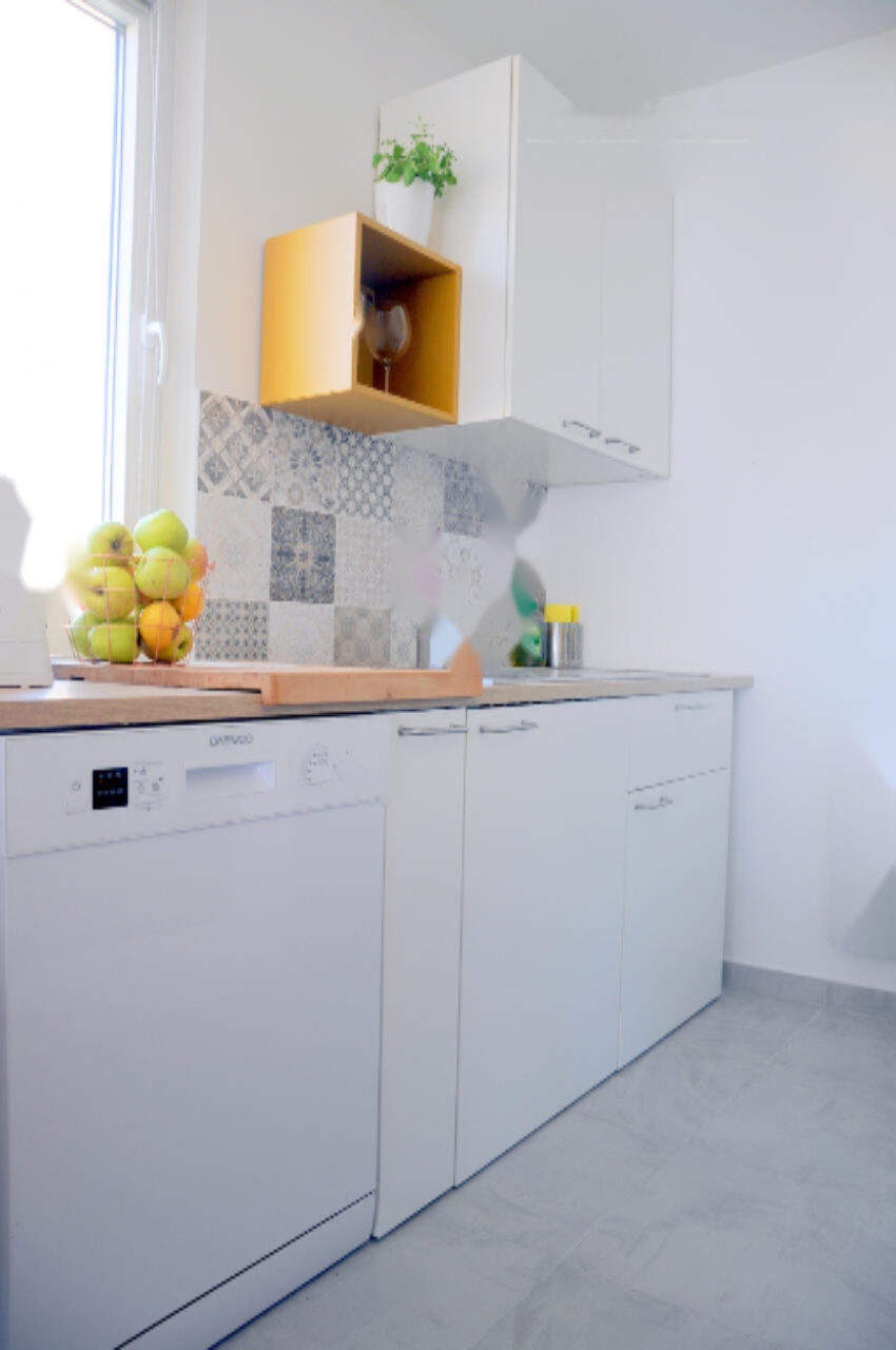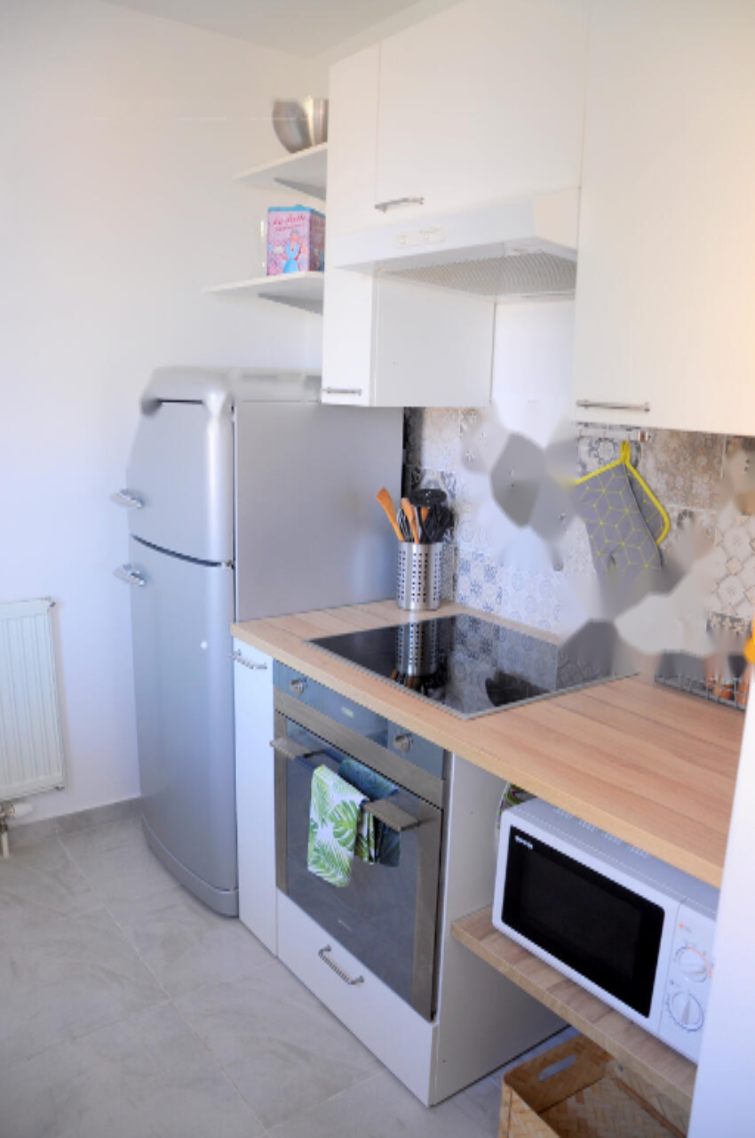 В тихом районе, окруженном садом, в одном километре от берега находятся все необходимые удобства. Перед зданием предусмотрено парковочное место. Квартира имеет свой счётчик воды и электроэнергии, высокоскоростной интернет. Ежемесячные расходы составляют около 158 евро, включая все коммунальные услуги.