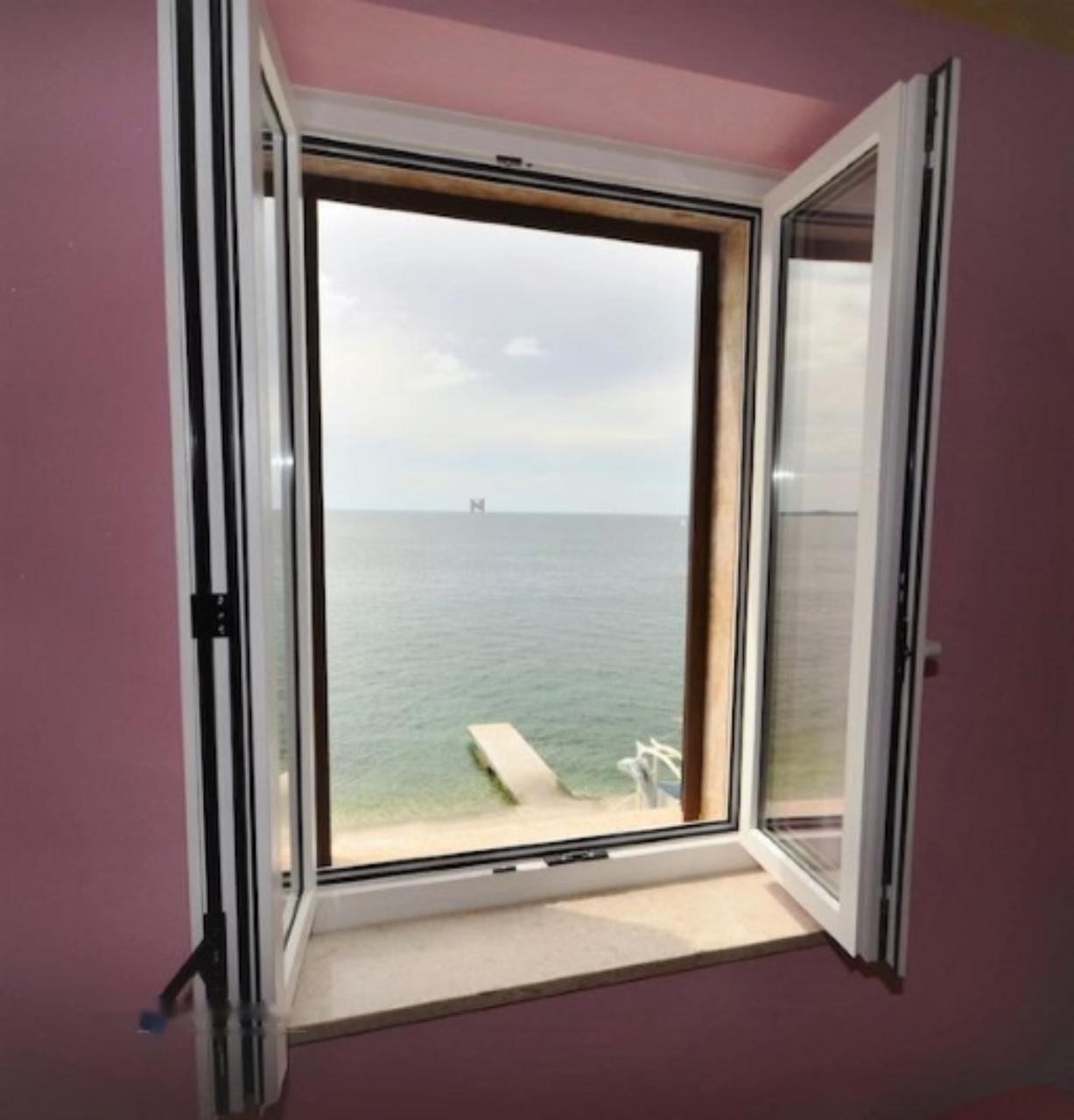 Из окон в гостиной и главной спальне открывается завораживающий вид на синие воды моря. Высокие потолки и массивная мебель подчеркивают атмосферу роскоши и комфорта. Для удобства проживания предусмотрены кондиционеры и электрическое отопление. Владелец квартиры также имеет доступ к частному подвалу с отдельным выходом на улицу.