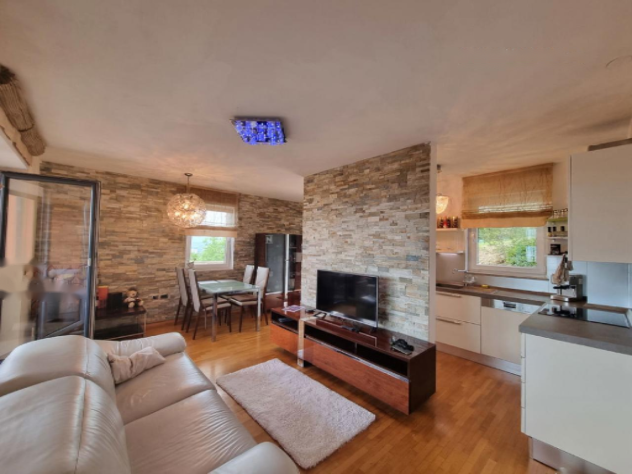 Квартира находится на втором этаже многоэтажного дома и предлагает комфортное проживание с высококачественной отделкой и современным дизайном. В прихожей, спальне и гостиной установлено качественное напольное покрытие, а в ванной комнате предусмотрено подогрев пола. Из кухни и столовой зоны открывается выход на просторную террасу с захватывающим видом на Коперский залив.